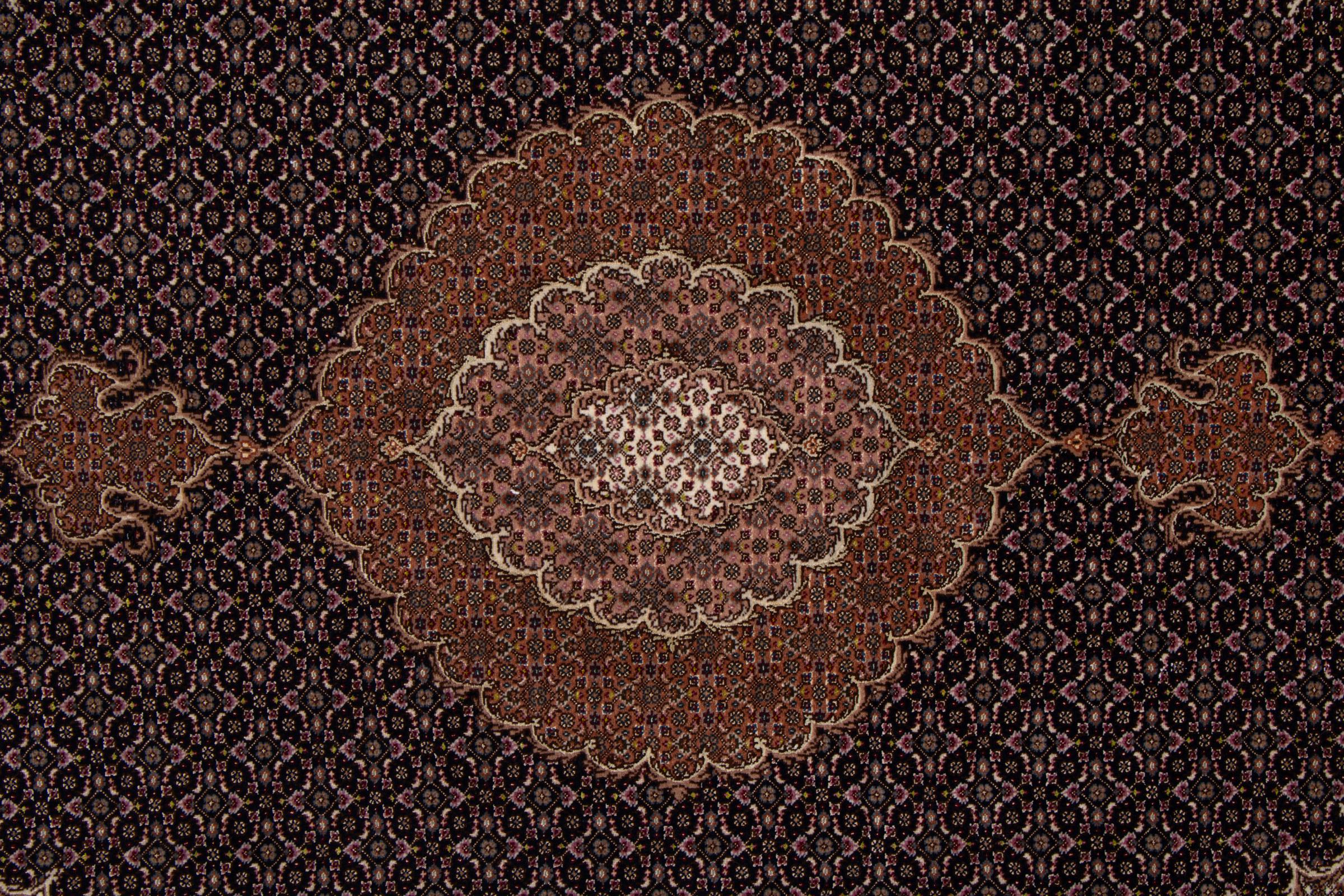 Tabris is one of the largest cities in Iran and is one of the most famous Persian rug provenance. Tabris rugs are often indicated by a "Raj" number. The higher this number, the finer the rug is, as it indicates the knot density. There are both average (40 Raj) and exceptionally fine (80 Raj) Persian rugs from Tabris.