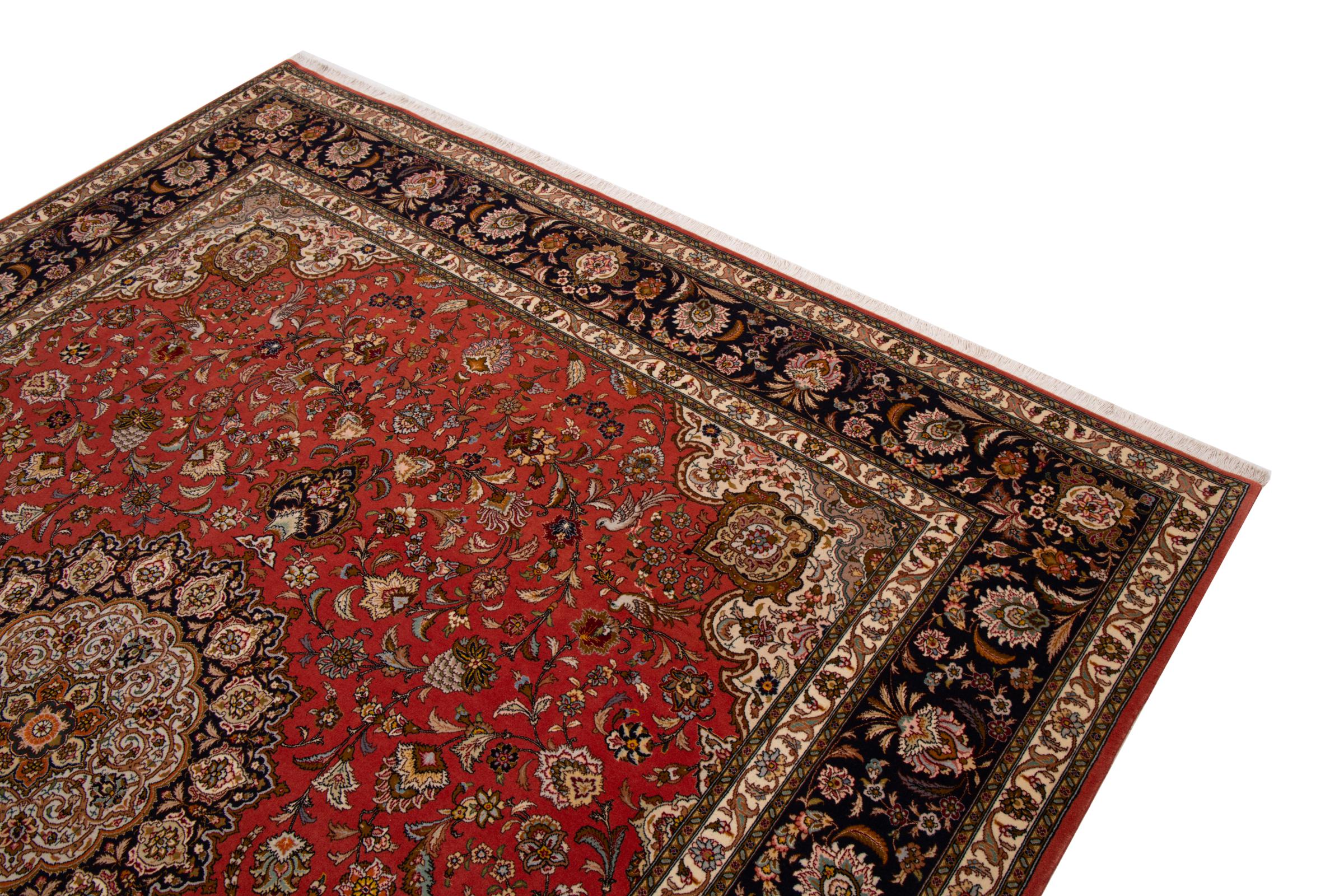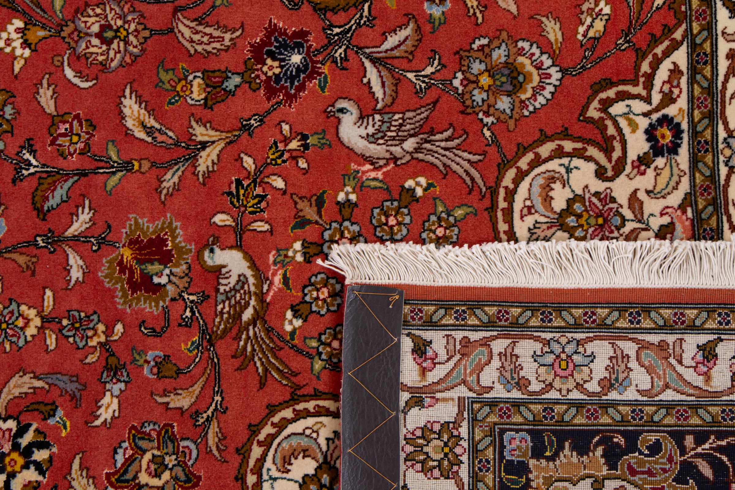 Carpet ID: 292766009759999 Size: 297x252 cm Thickness: ap. 7 mm Knot density: 440 000 - 490 000 / m² Manufacturing: Knotted by hand Pile: Wool with silk Warp: Cotton Origin: Persia Age: New Weight: ap. 22 kg Also know as Tabriz, Tabris, Täbris, Tebriz, Tebris, 40Raj, 50Raj In stock: Unique - Only 1 in stock