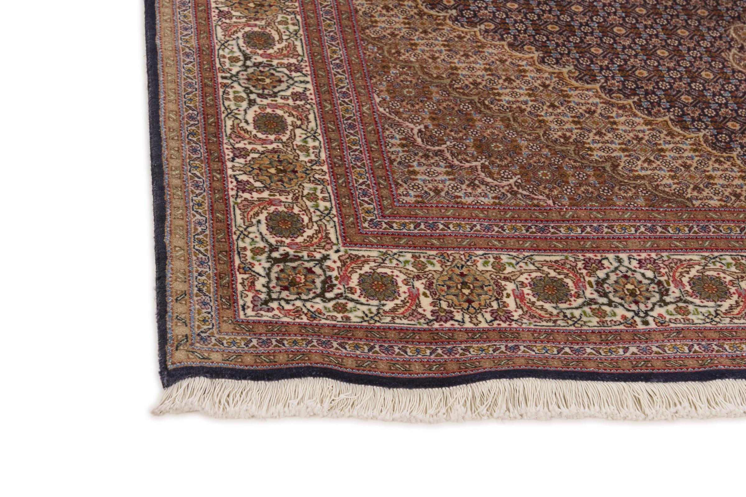 This rug from Tabriz has a traditional look. The Herati or Mahi pattern is one of the most classic designs of all. Anyone who loves traditional design will never want to be without this rug again.
