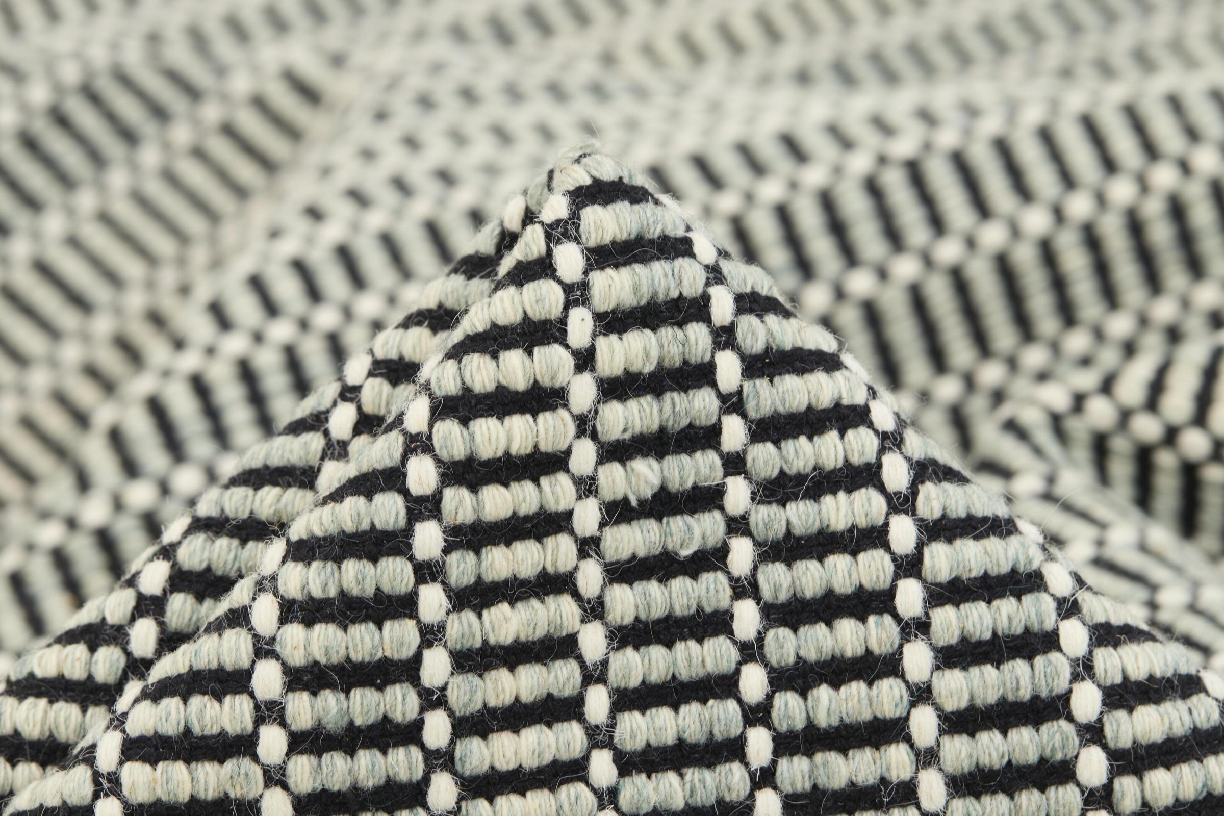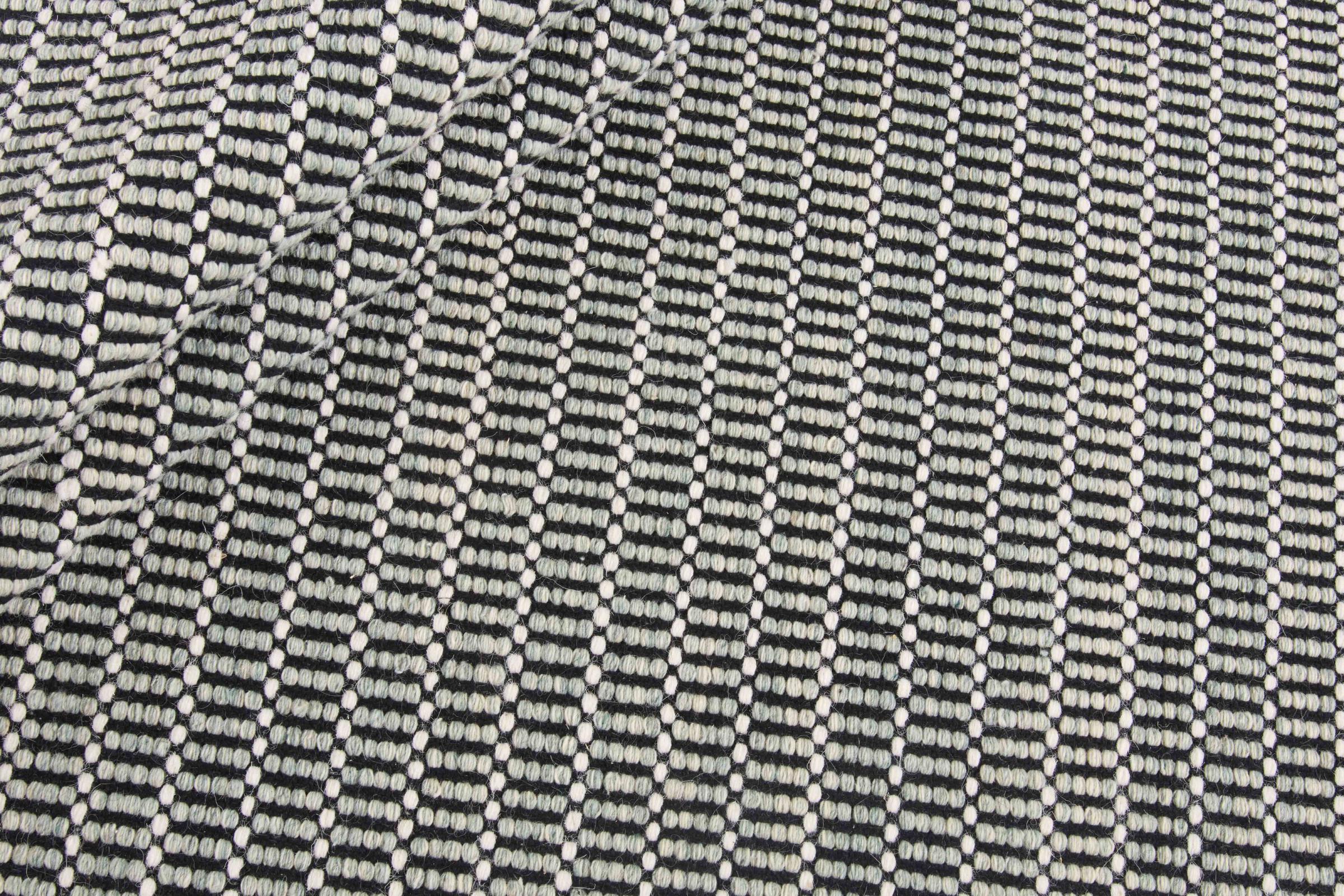 This timelessly elegant modern design kilim is made from high-quality natural wool and is woven by hand with the greatest care using traditional craftsmanship. Its pattern gives it a distinctive structure and makes it an extremely classic, modern, elegant eye-catcher in your home.