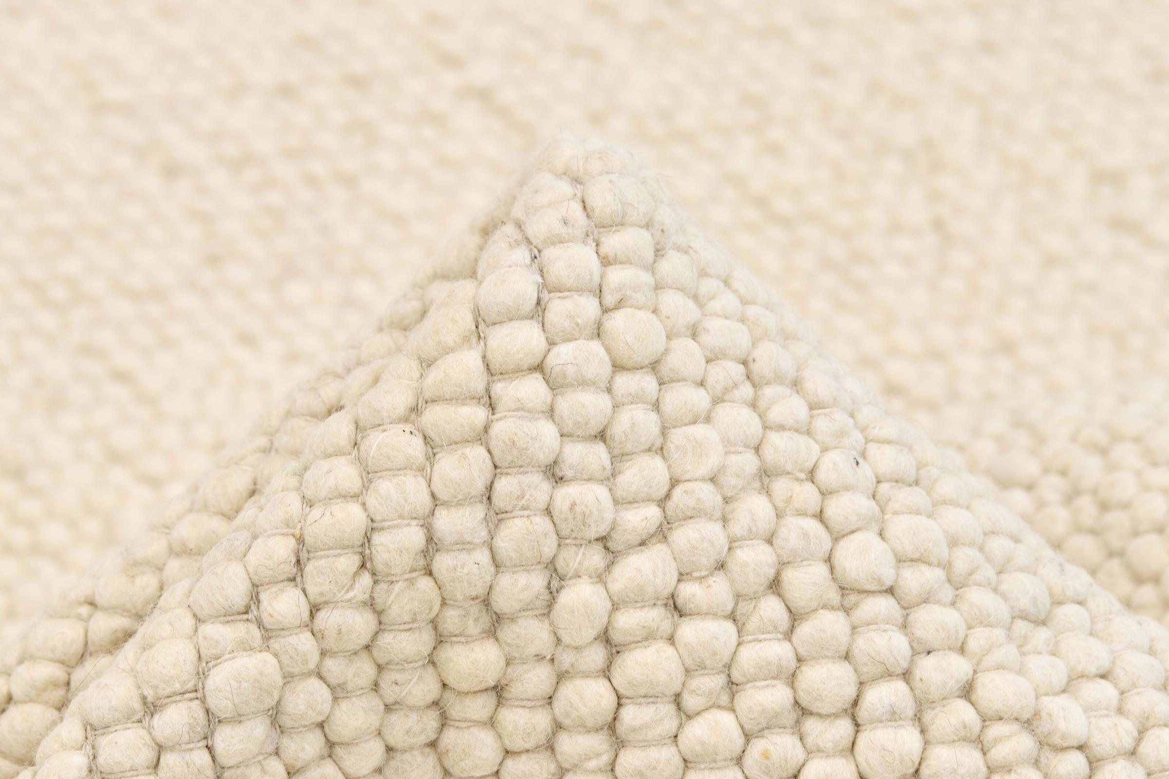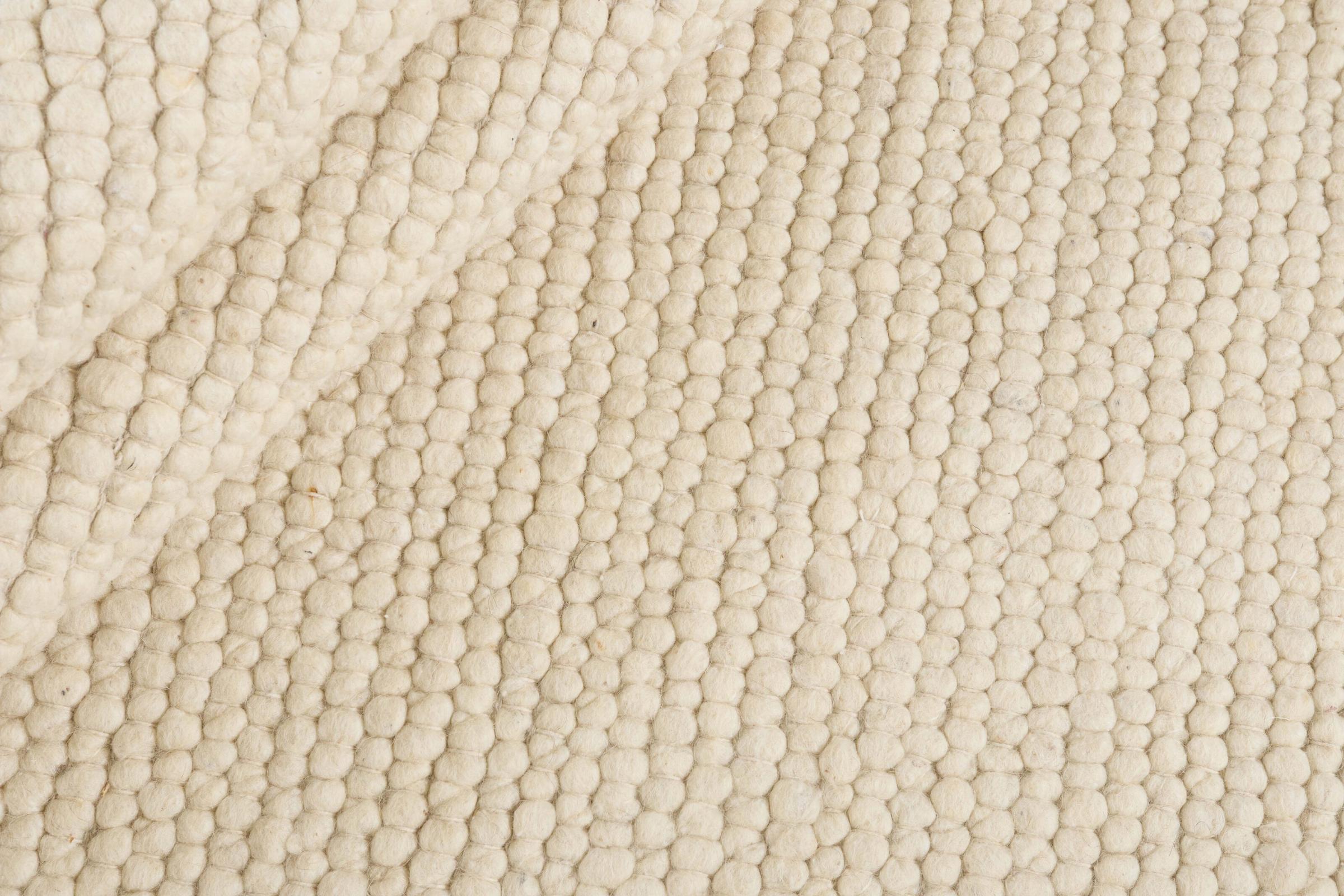 This Texura Hilly rug is hand-woven from natural sheep wool using traditional craftsmanship in India. Its comfort-producing design was created in Scandinavia. Since it is woven and not knotted, it has no pile. Nevertheless, this carpet impresses with a height of 18 mm and looks extremely homely, even in otherwise cooler designer interiors, for which it is an ideal harmonizing addition.