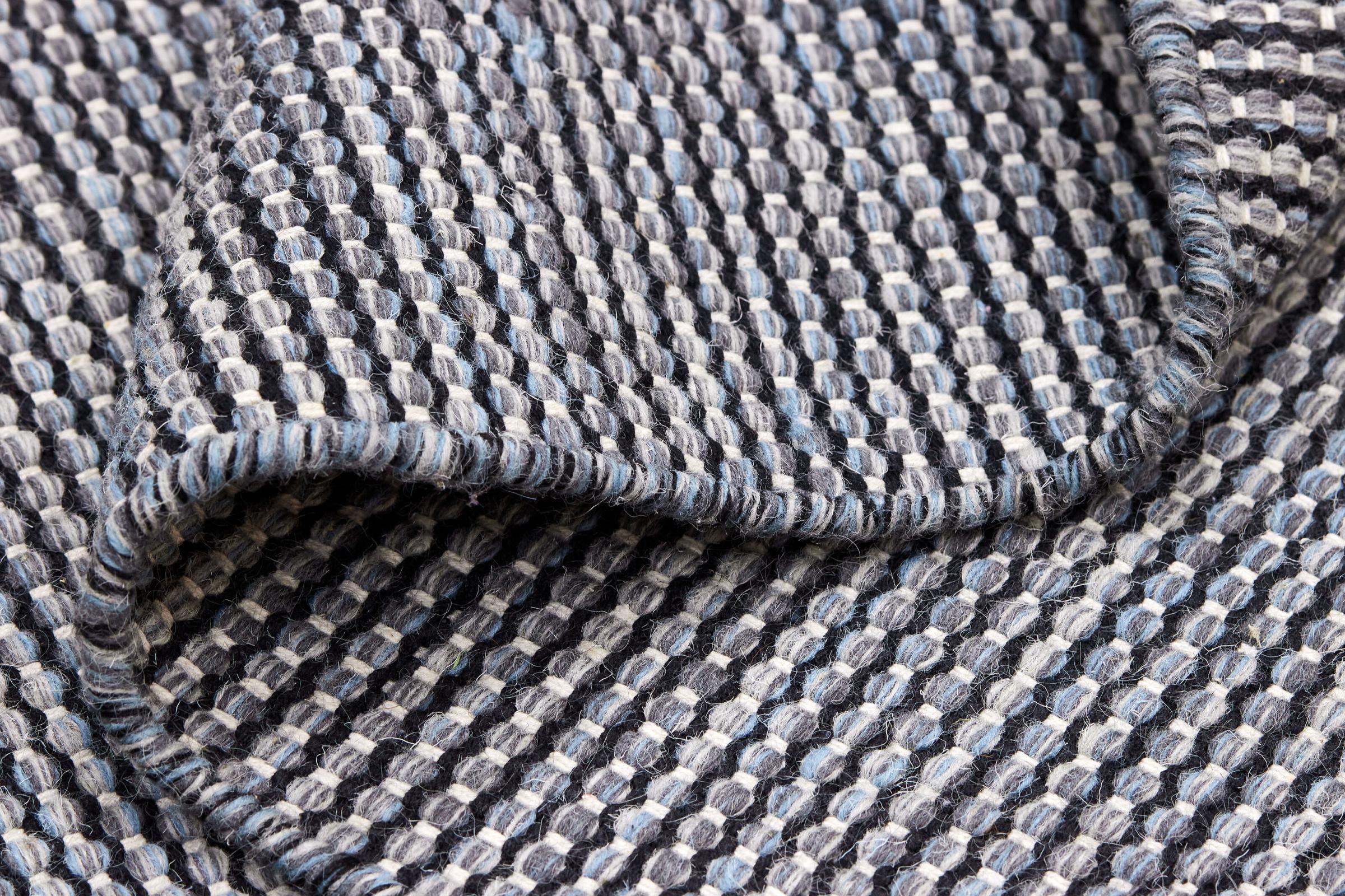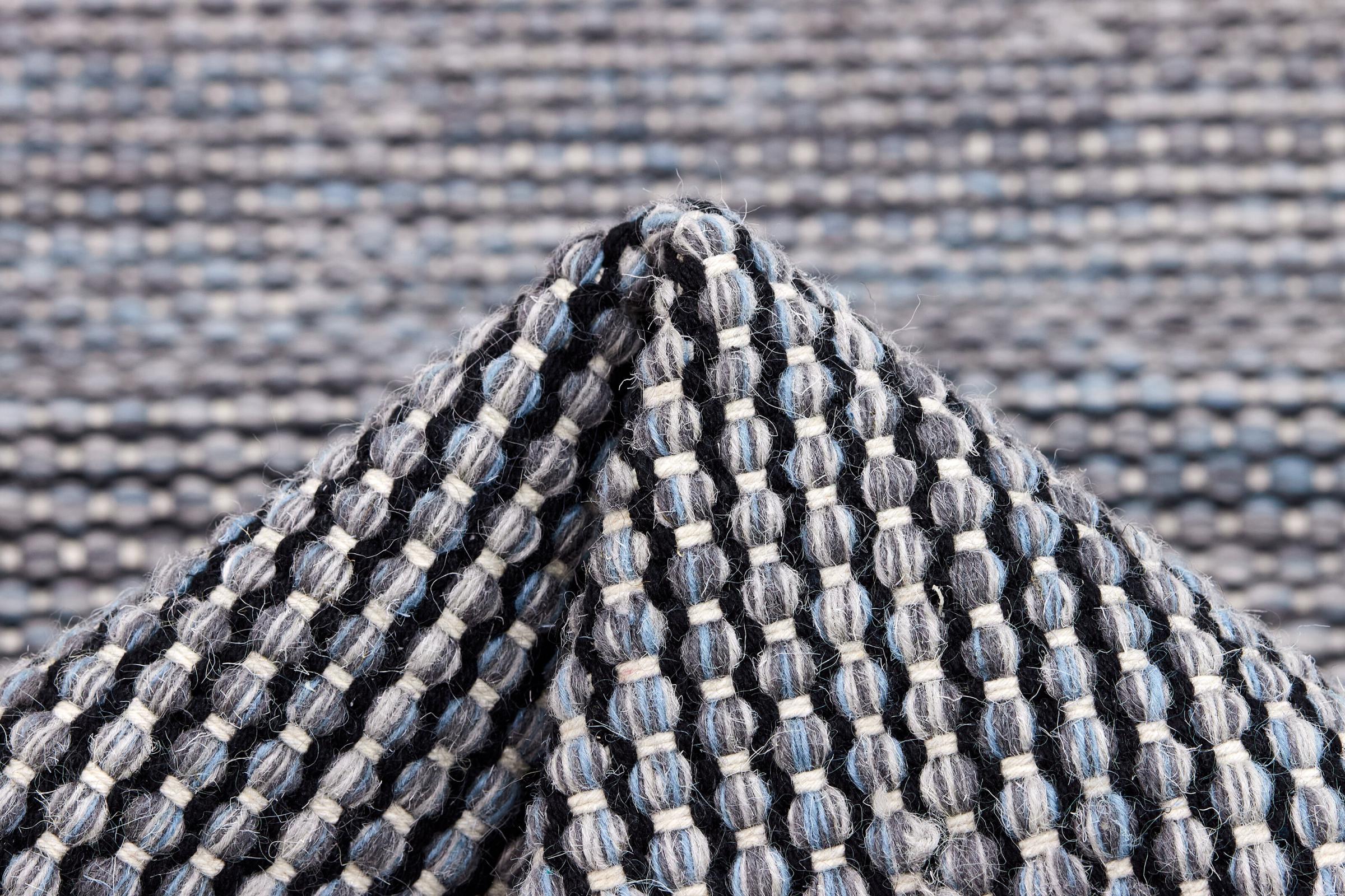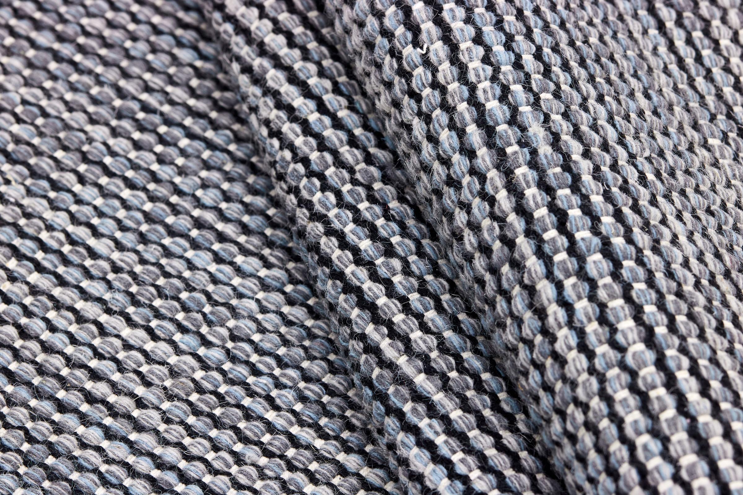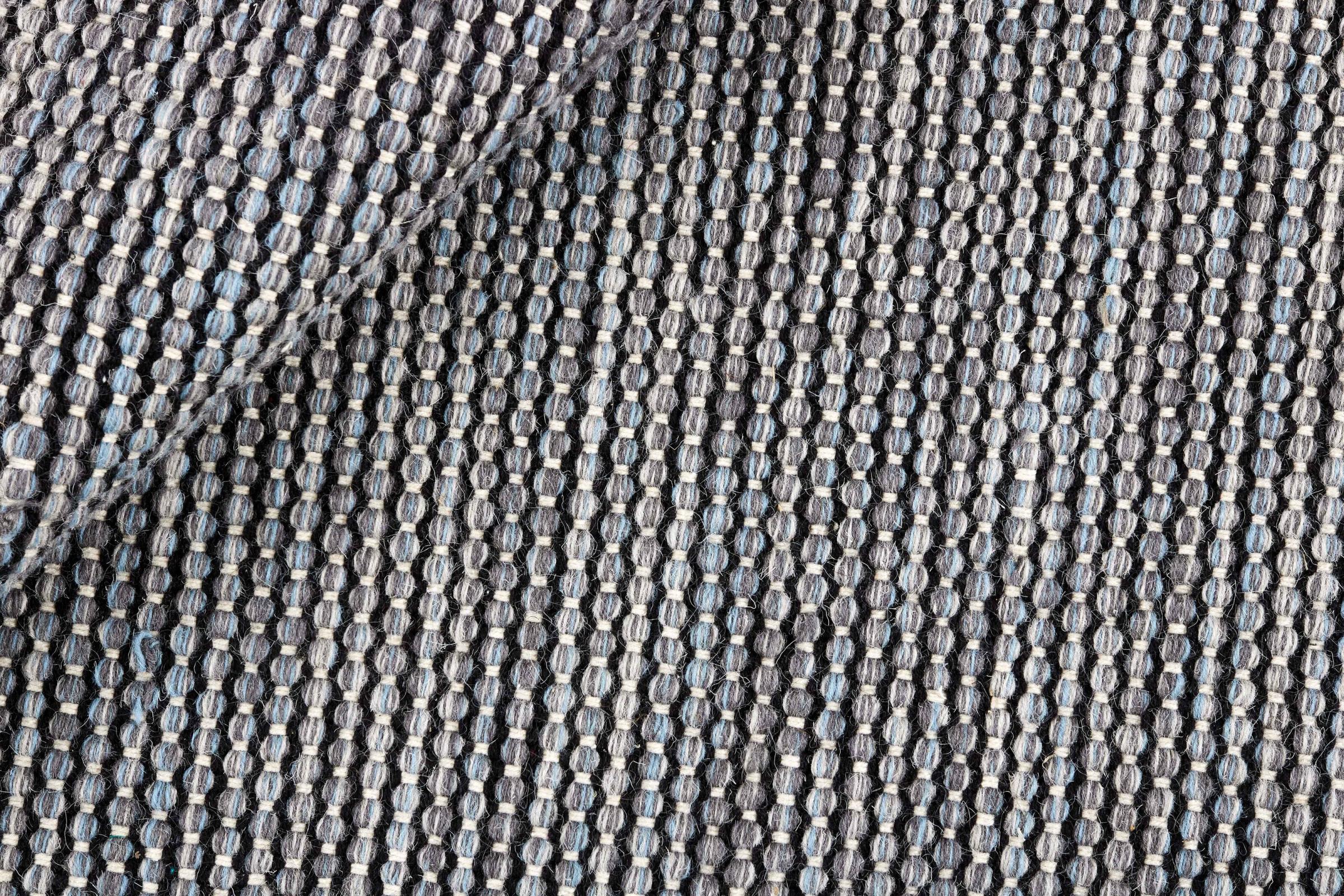 This rug was made as a flat weave by hand on a loom. Flatweave is the term used to describe rugs that have no pile. As the name promises, these rugs are woven and not knotted. This results in a flat rug with a structured surface. Flatweaves are not as soft and usually thinner than knotted rugs. At the same time they are much less complex to manufacture and can usually be laid out from both sides (front and back). Their patterns are usually geometric, which is determined by the fabric.