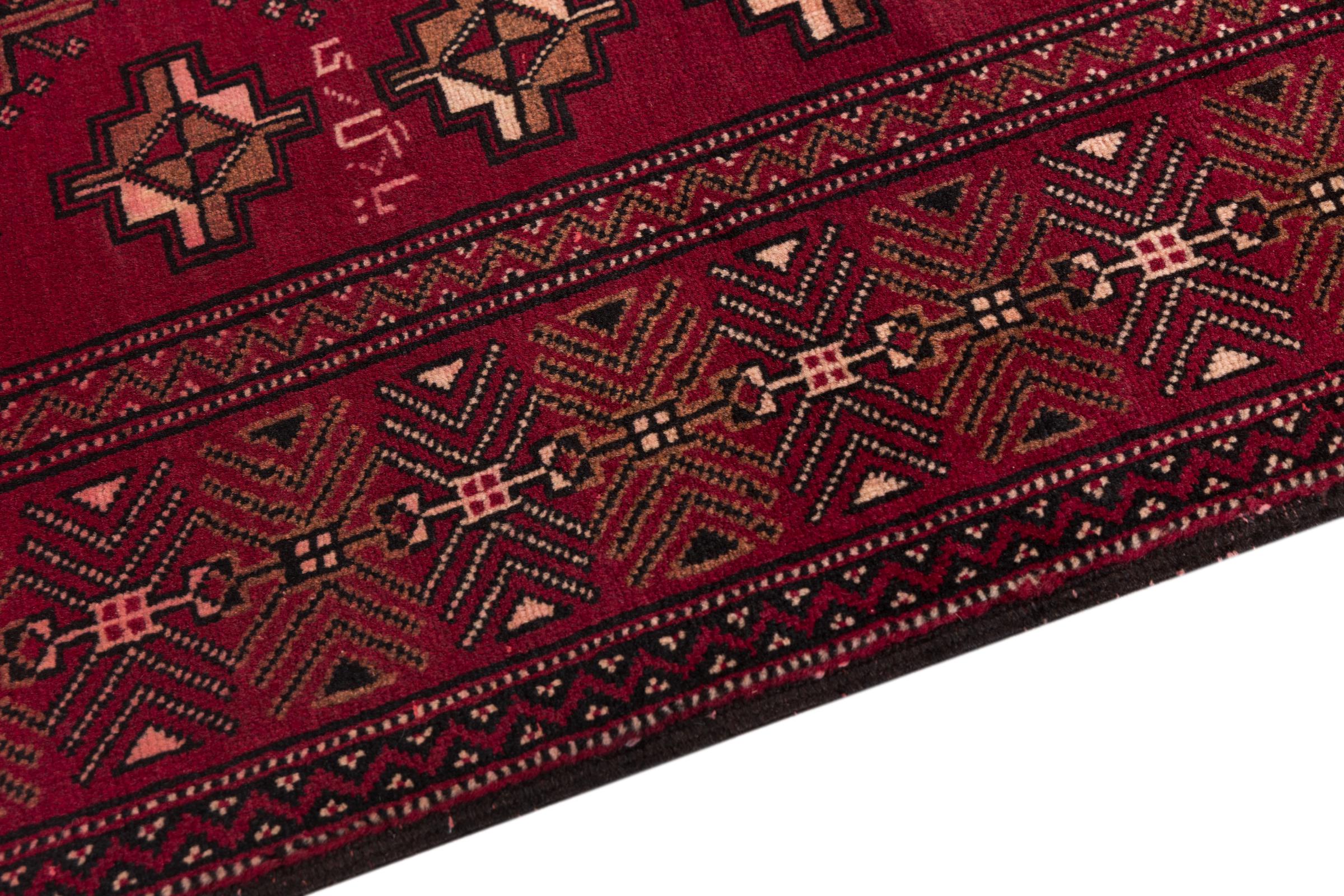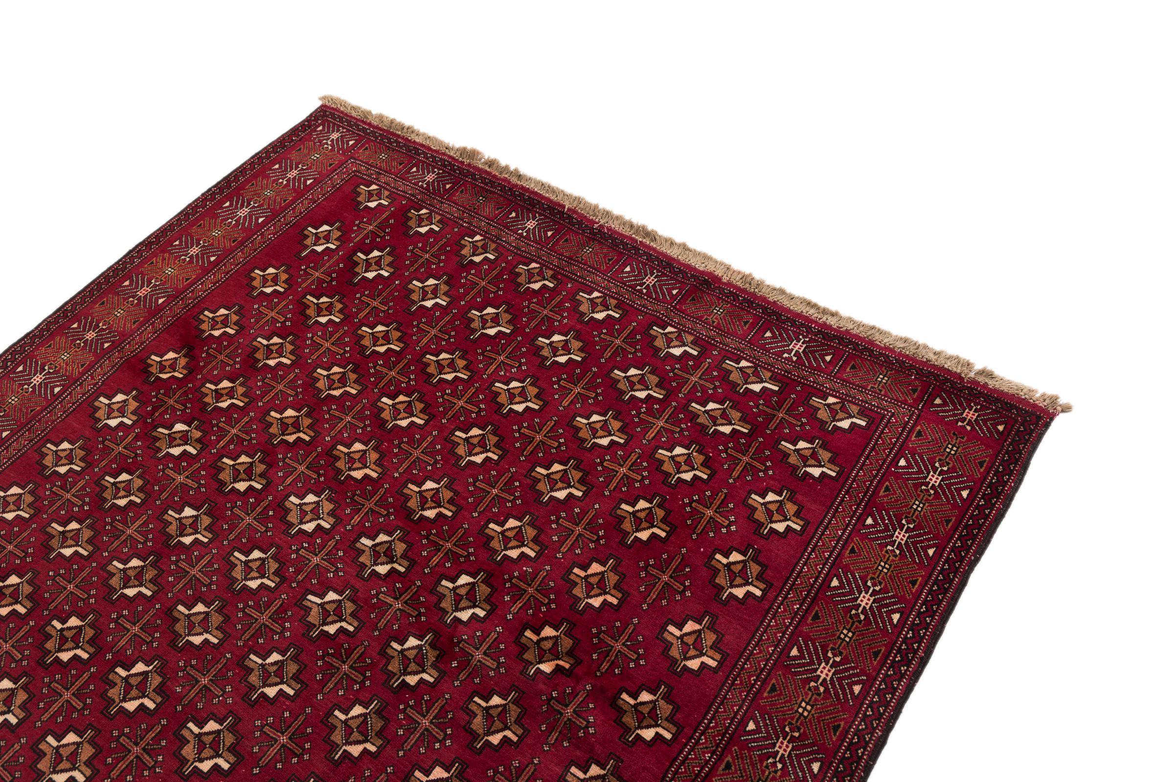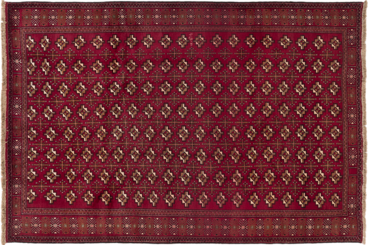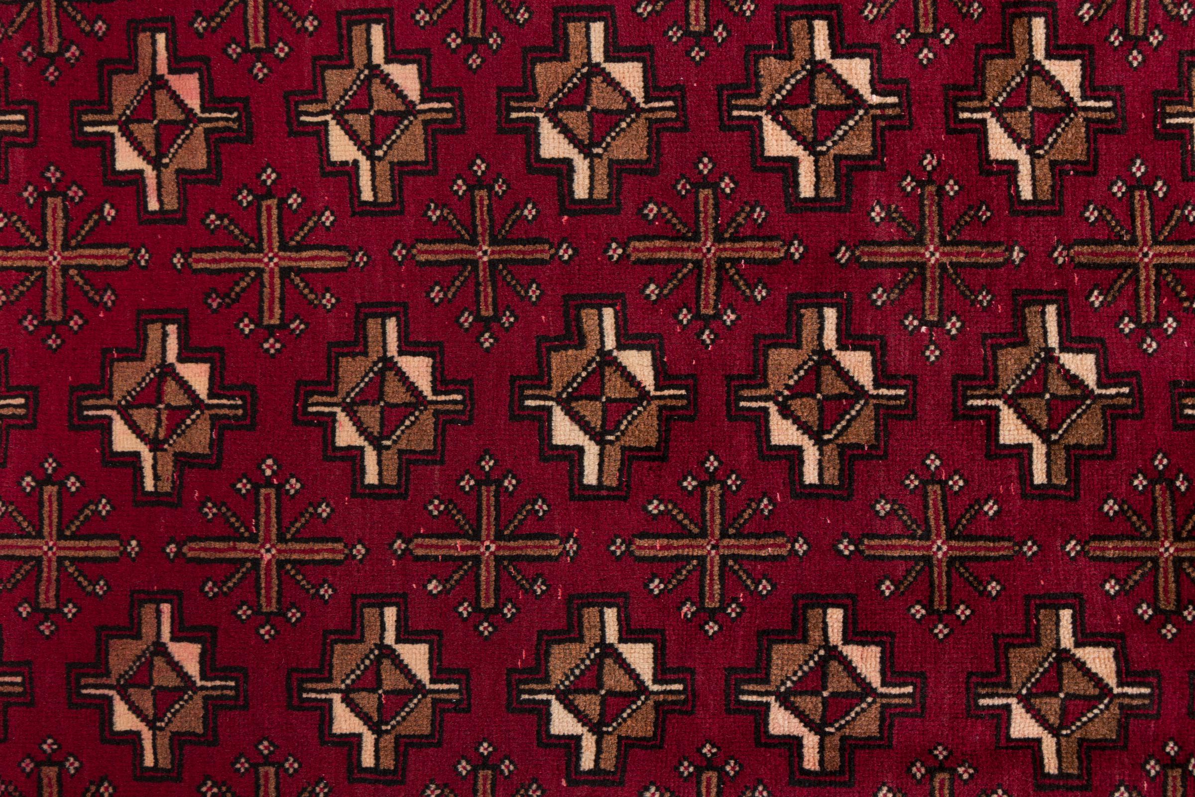This Turkaman rug was knotted in traditional handicraft and convinces with its high production standard and the high-quality sheep's wool with high fat content. Its dark, warm colours reflect the Turkmen culture and add a touch of orient and cosiness to your home. Pakistani carpets often resemble this type of carpet, but often fail to match its quality.