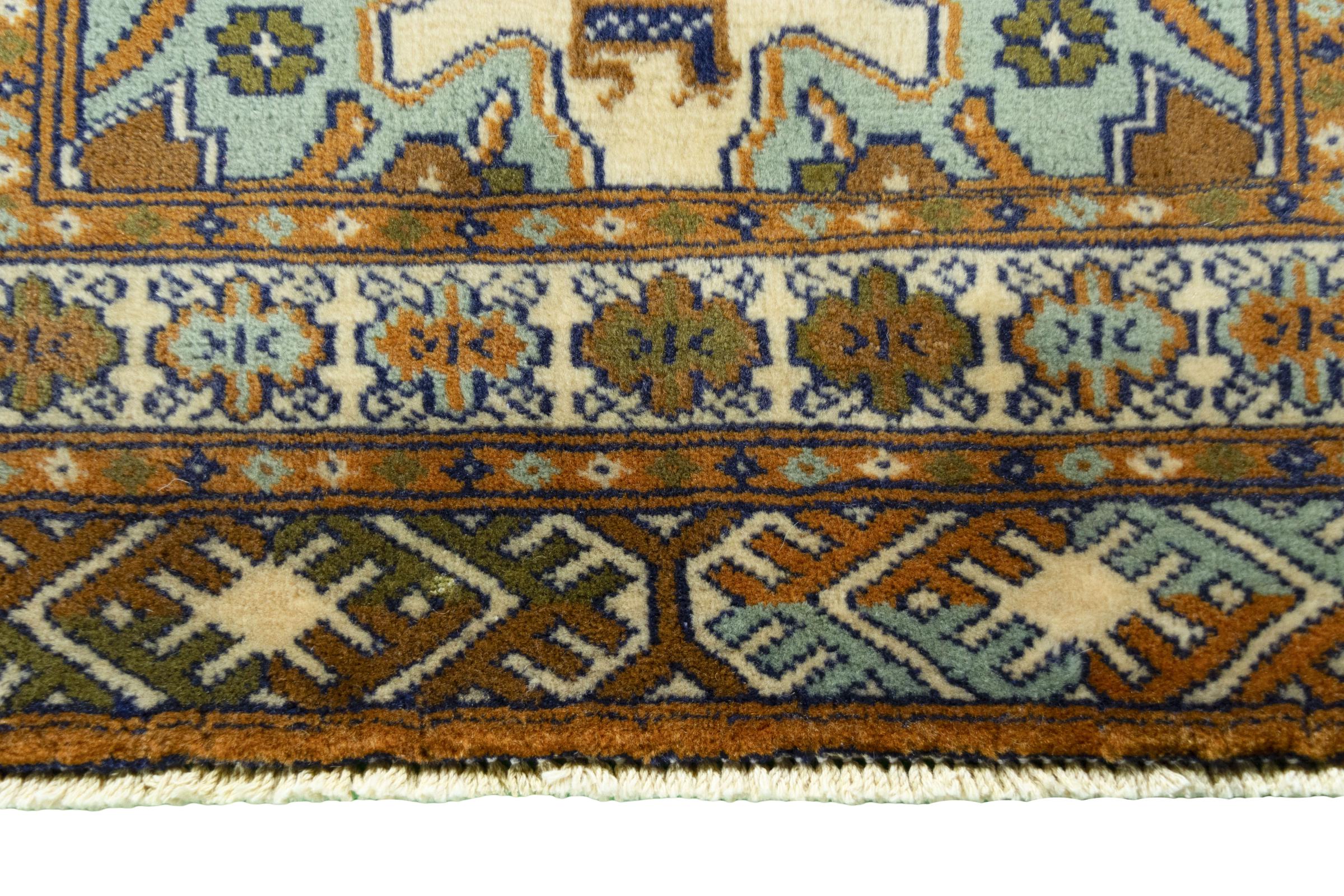 This Turkaman rug was knotted in traditional handicraft and convinces with its high production standard and the high-quality sheep's wool with high fat content. Its dark, warm colours reflect the Turkmen culture and add a touch of orient and cosiness to your home. Pakistani carpets often resemble this type of carpet, but often fail to match its quality.
