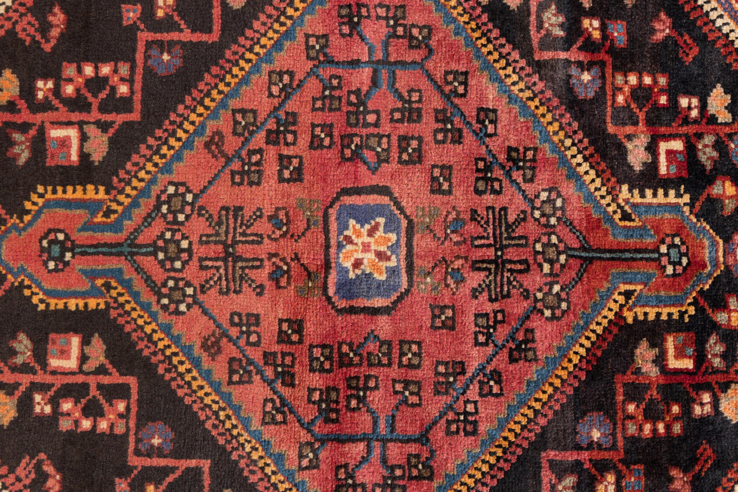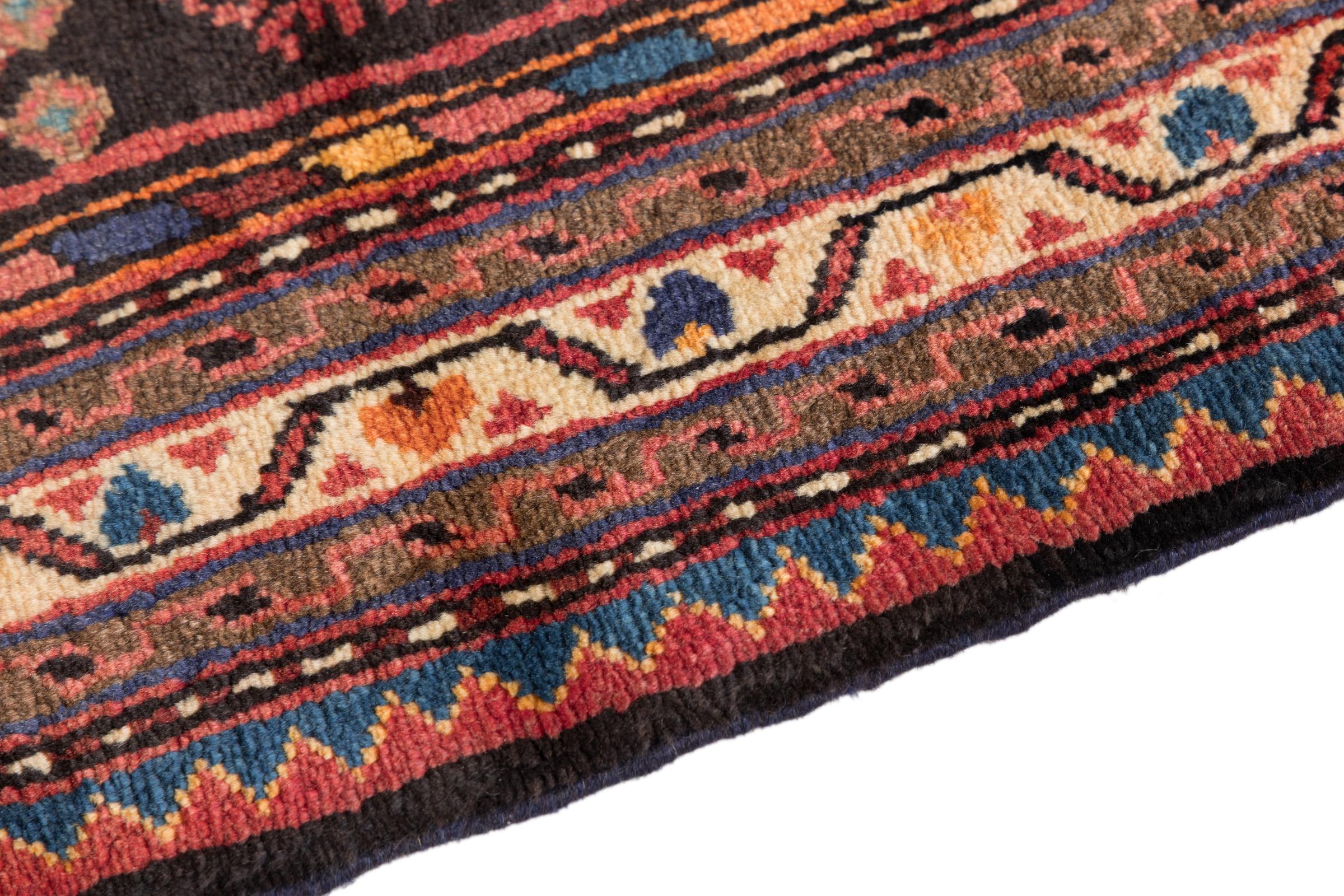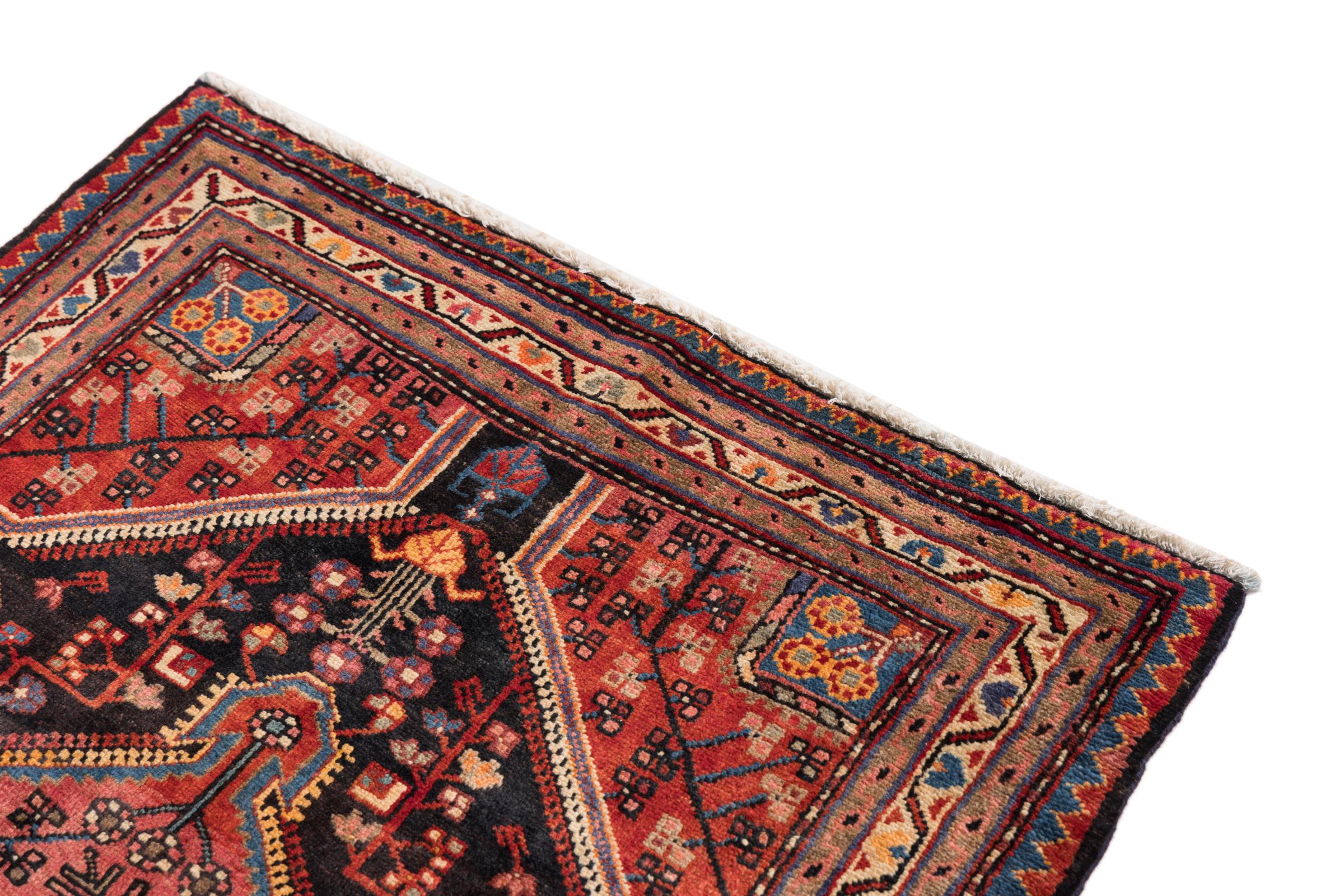 This rug belongs to village and nomadic rugs from Iran, formerly Persia. This type of rug is knotted by hand in smaller towns and villages in old tradition. Even nomads still knot Persian rugs in the open air. The rugs are knotted without a draft and completely from the mind. They are characterized by classical ornaments, which are arranged in straight and geometrical patterns. Thanks to their cultural-traditional origin, these rugs have a unique character that embodies ancient Persia.