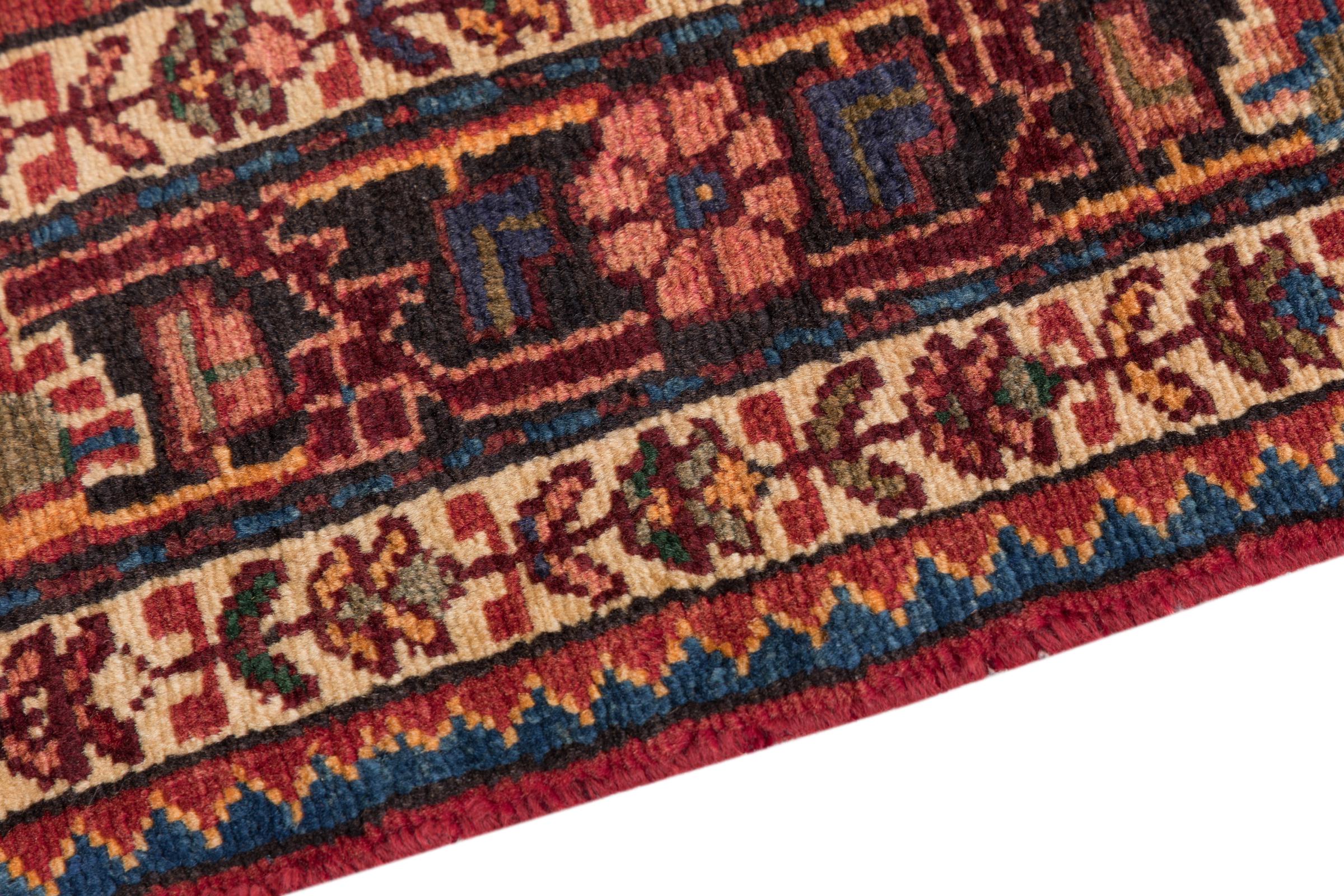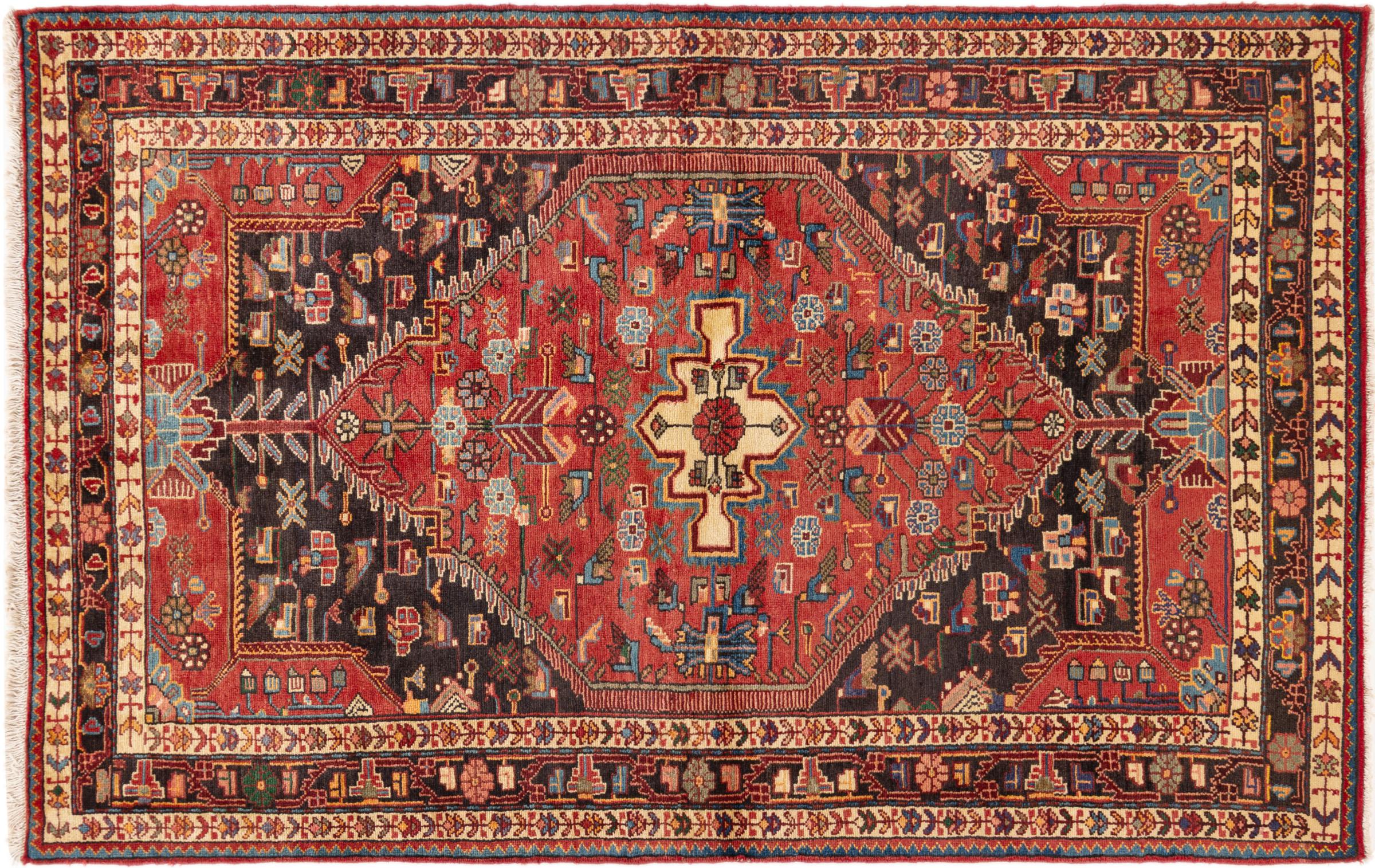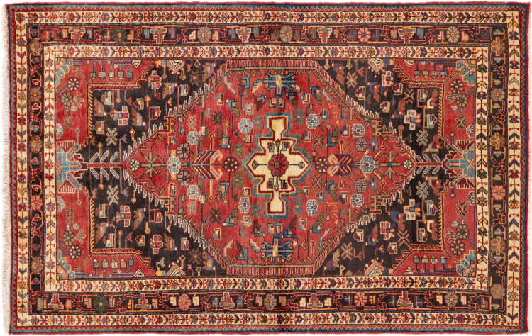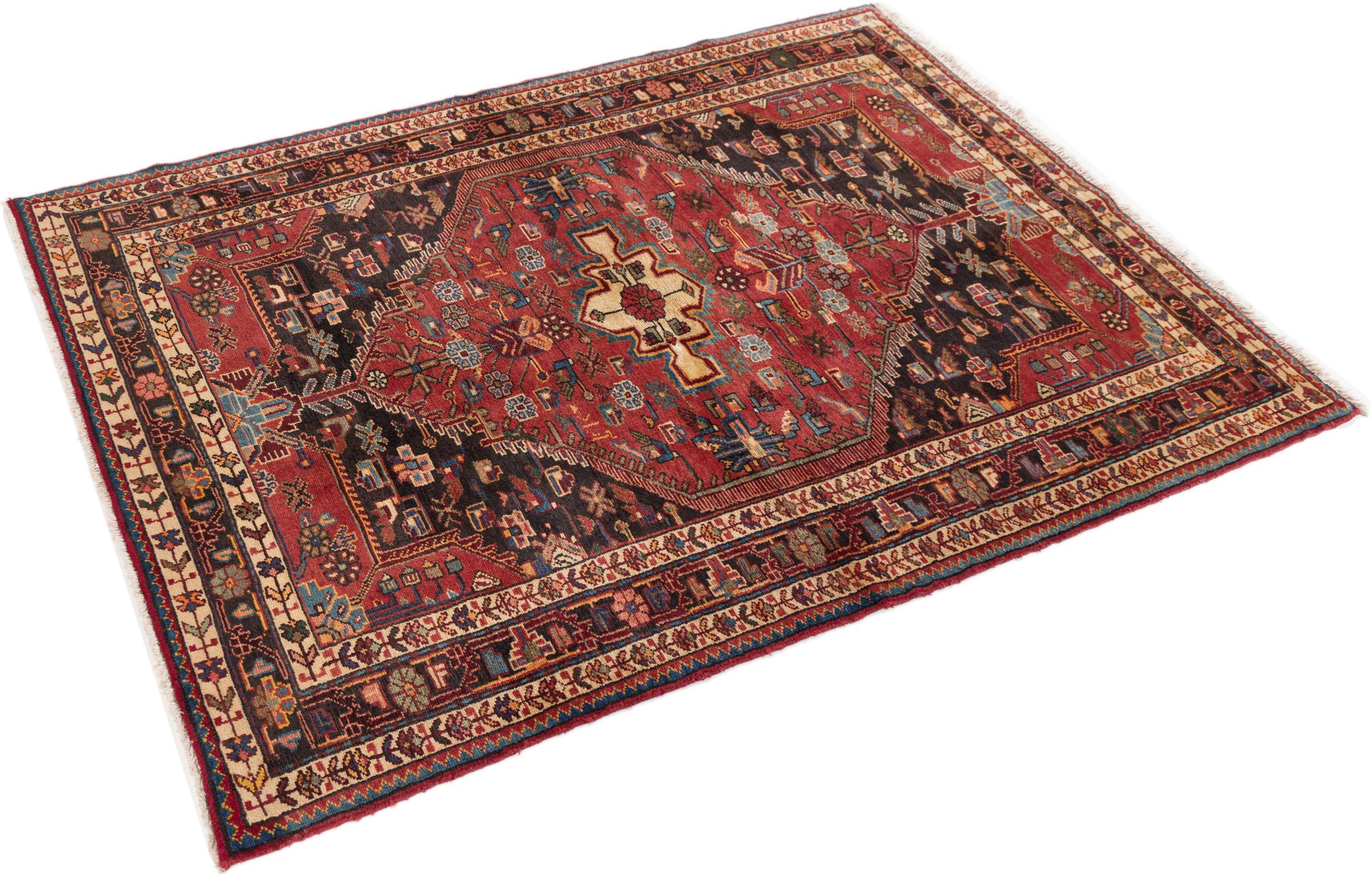 This rug belongs to village and nomadic rugs from Iran, formerly Persia. This type of rug is knotted by hand in smaller towns and villages in old tradition. Even nomads still knot Persian rugs in the open air. The rugs are knotted without a draft and completely from the mind. They are characterized by classical ornaments, which are arranged in straight and geometrical patterns. Thanks to their cultural-traditional origin, these rugs have a unique character that embodies ancient Persia.