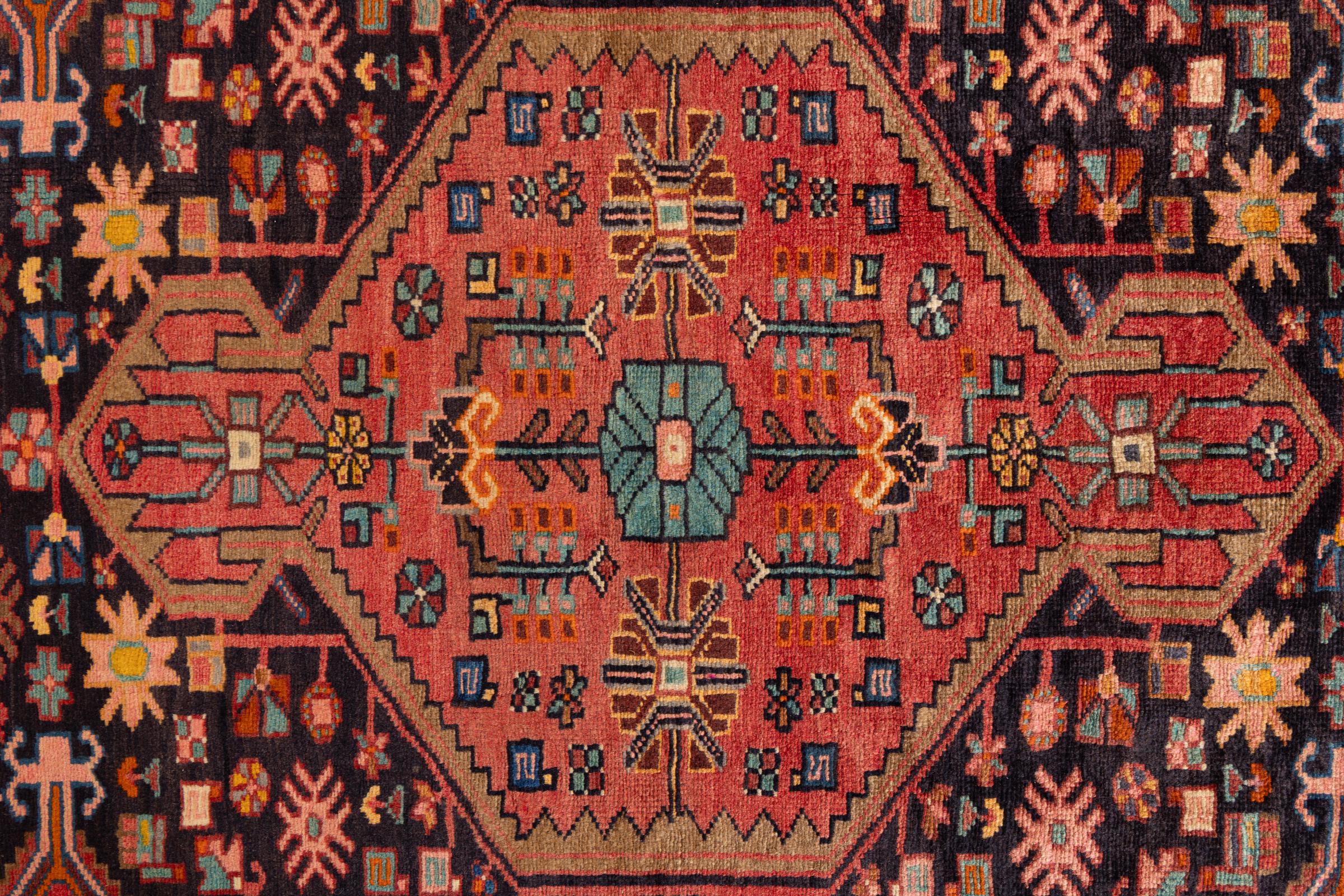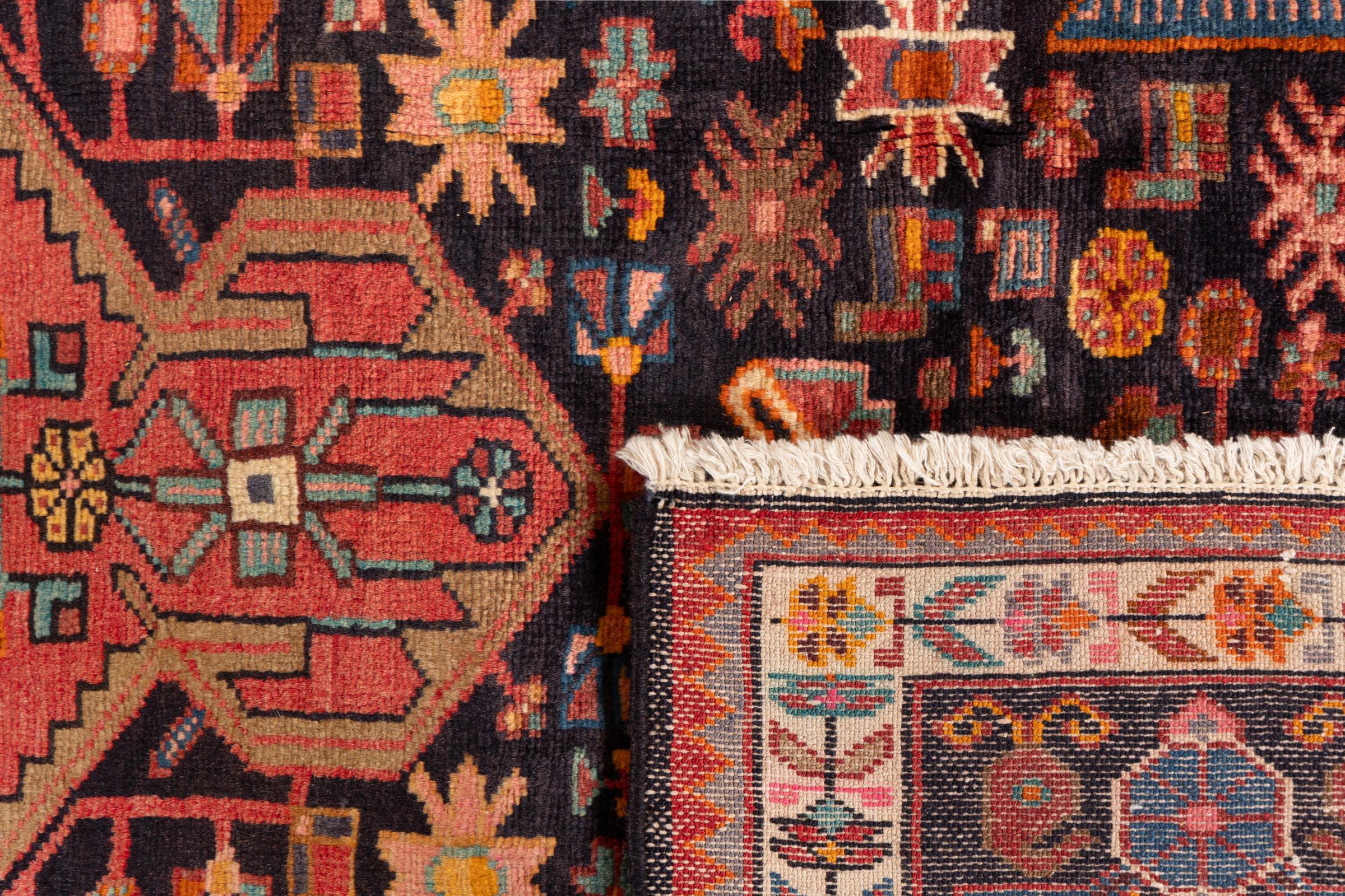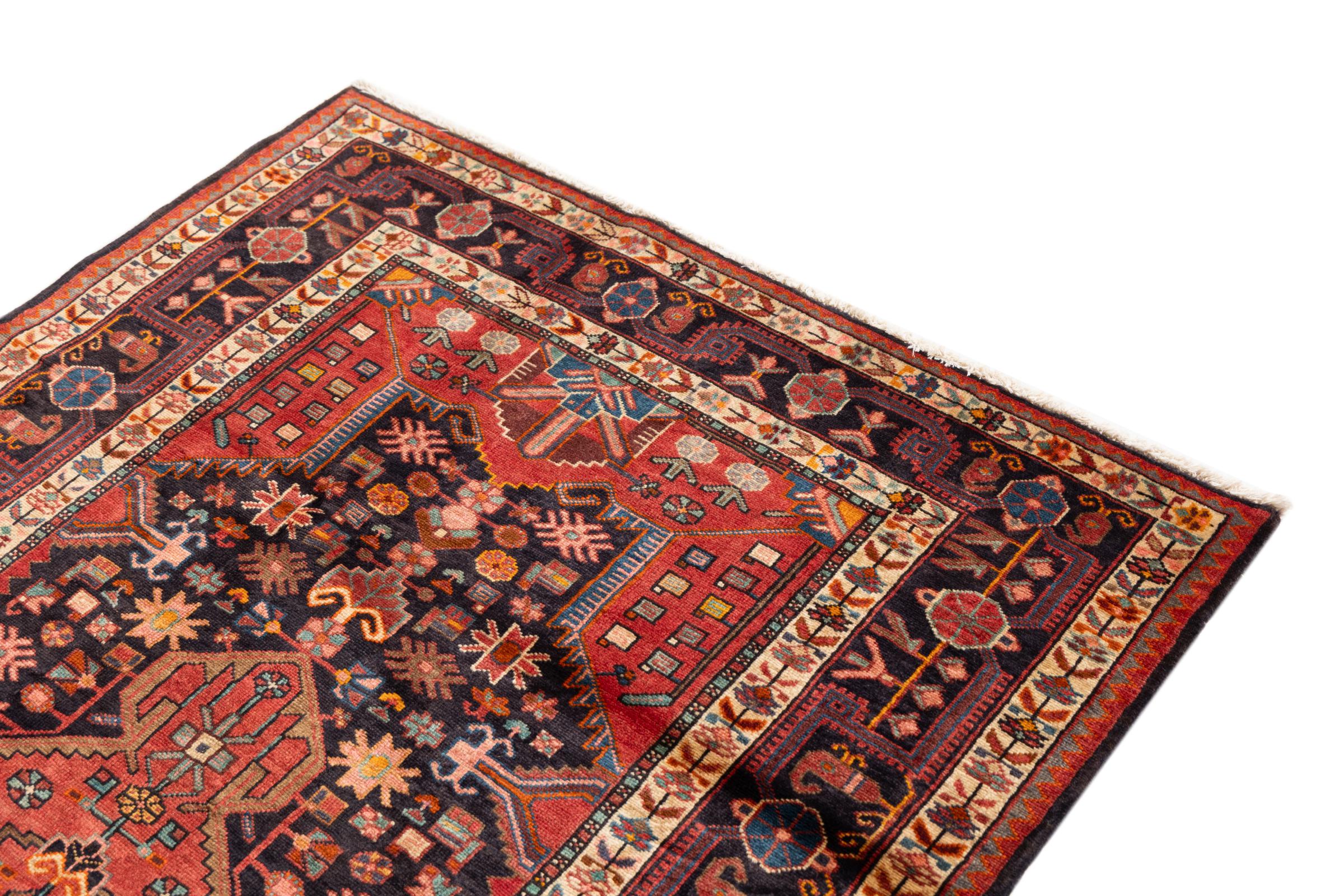 This rug belongs to village and nomadic rugs from Iran, formerly Persia. This type of rug is knotted by hand in smaller towns and villages in old tradition. Even nomads still knot Persian rugs in the open air. The rugs are knotted without a draft and completely from the mind. They are characterized by classical ornaments, which are arranged in straight and geometrical patterns. Thanks to their cultural-traditional origin, these rugs have a unique character that embodies ancient Persia.