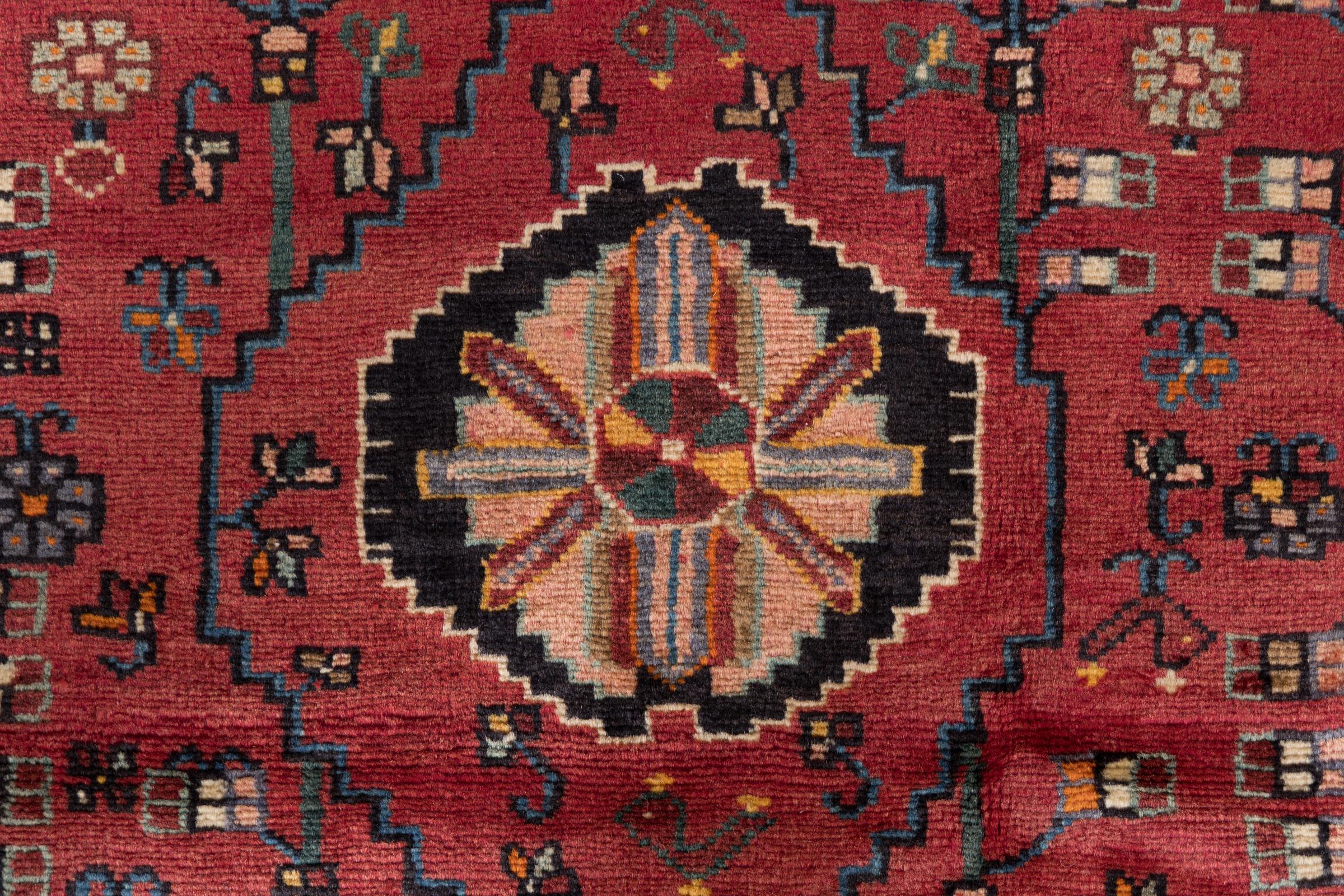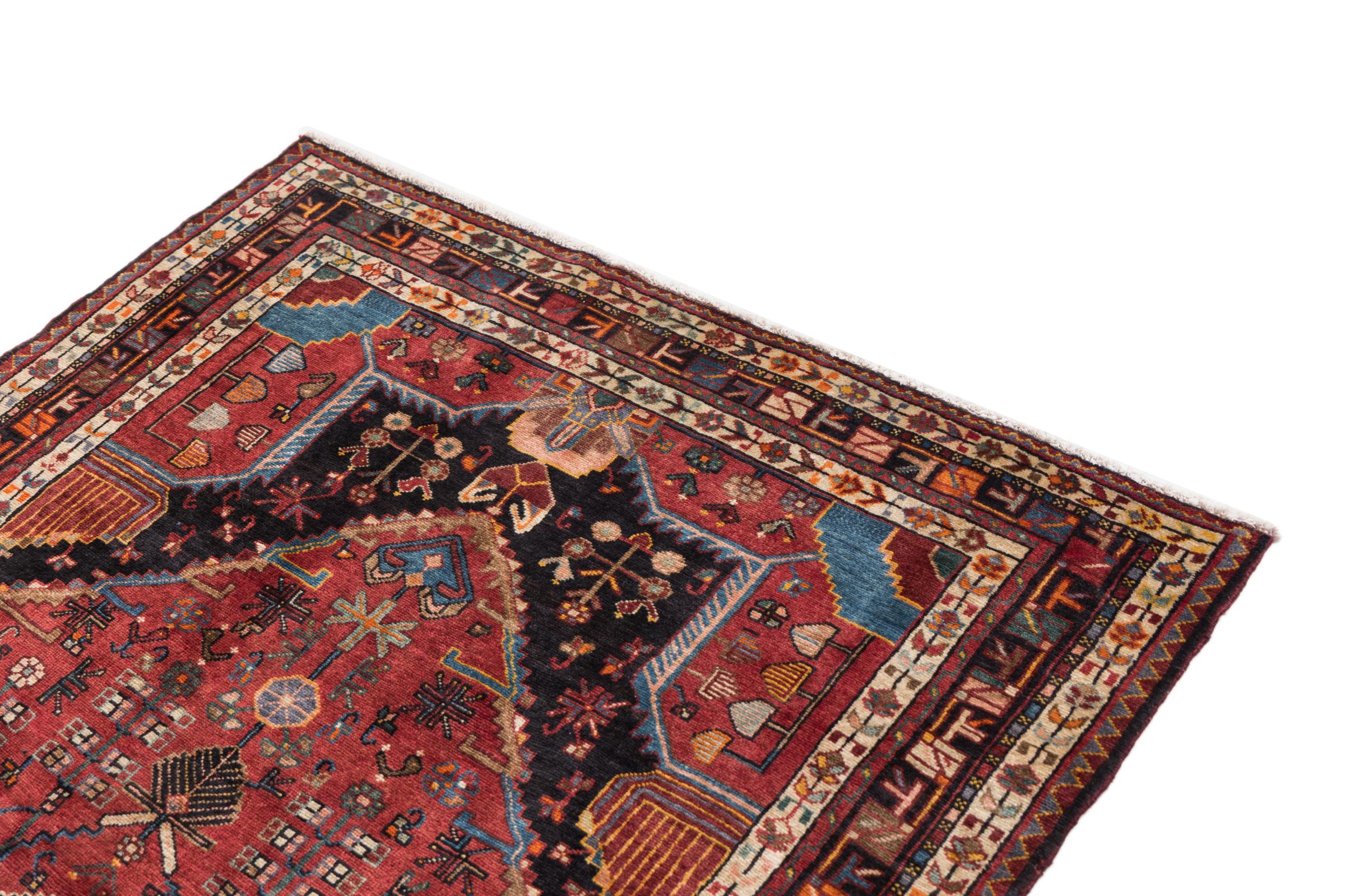 This rug belongs to village and nomadic rugs from Iran, formerly Persia. This type of rug is knotted by hand in smaller towns and villages in old tradition. Even nomads still knot Persian rugs in the open air. The rugs are knotted without a draft and completely from the mind. They are characterized by classical ornaments, which are arranged in straight and geometrical patterns. Thanks to their cultural-traditional origin, these rugs have a unique character that embodies ancient Persia.