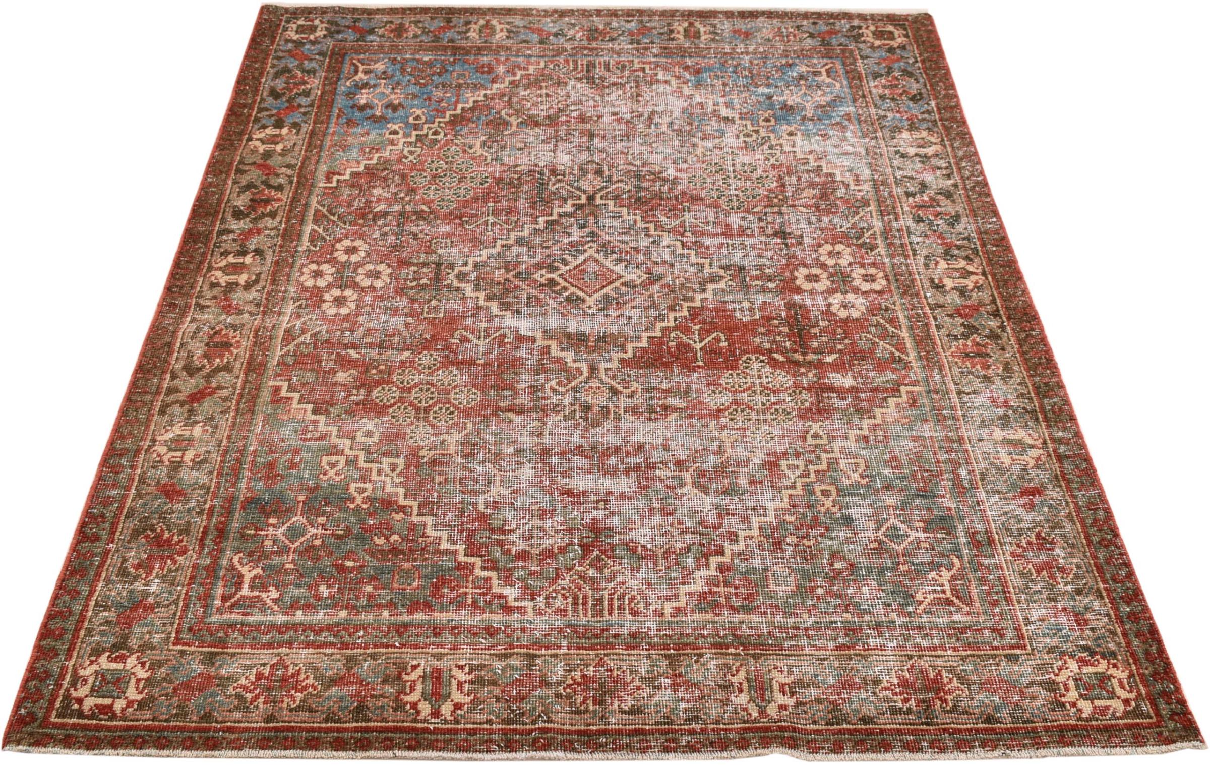 These vintage rugs are old hand knotted oriental rugs, mostly Persian rugs. Such a rug will last a lifetime. The rugs are usually discolored and the wool pile is reduced to one level. This gives the rug a uniform appearance and a timeless vintage style. Only hand knotted rugs of high quality and without defects are made as vintage rugs.