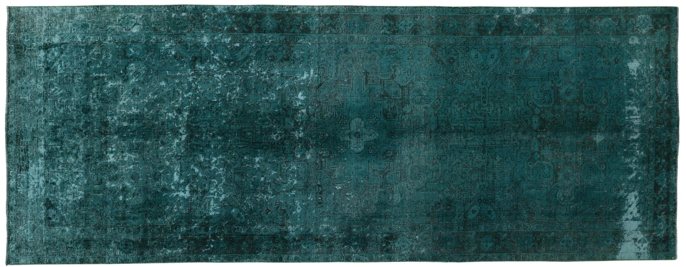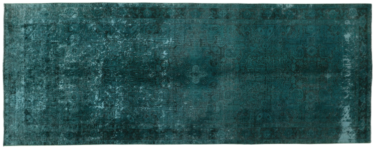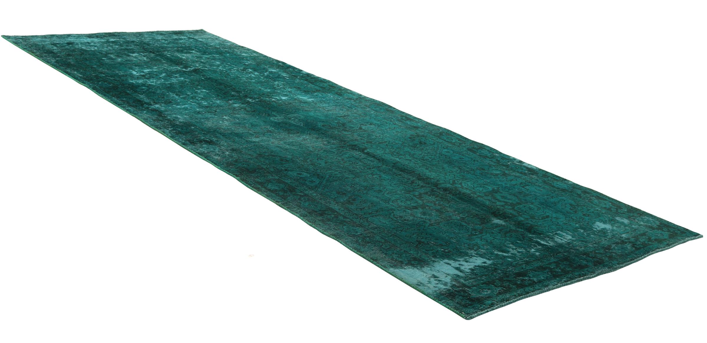 This is a hand-knotted Persian carpet that is at least 20 years old. Such a carpet can last for generations with the right care. The carpet has been completely re-dyed without completely over-dyeing the originally knotted ornaments. This gives the high quality Persian carpet a unique modern vintage character.