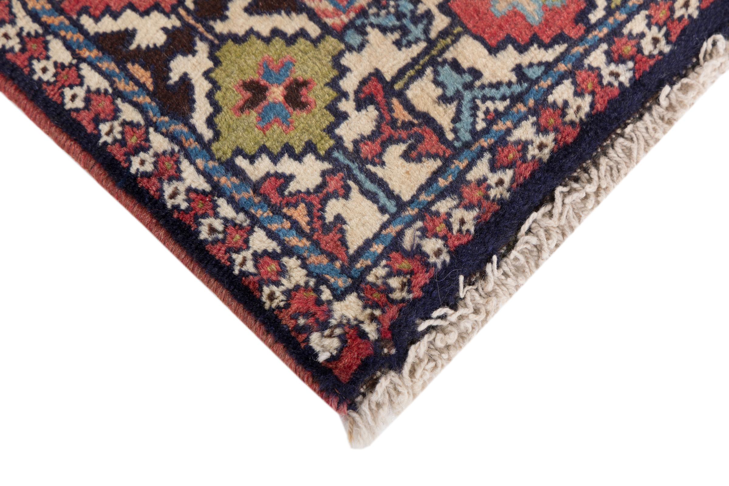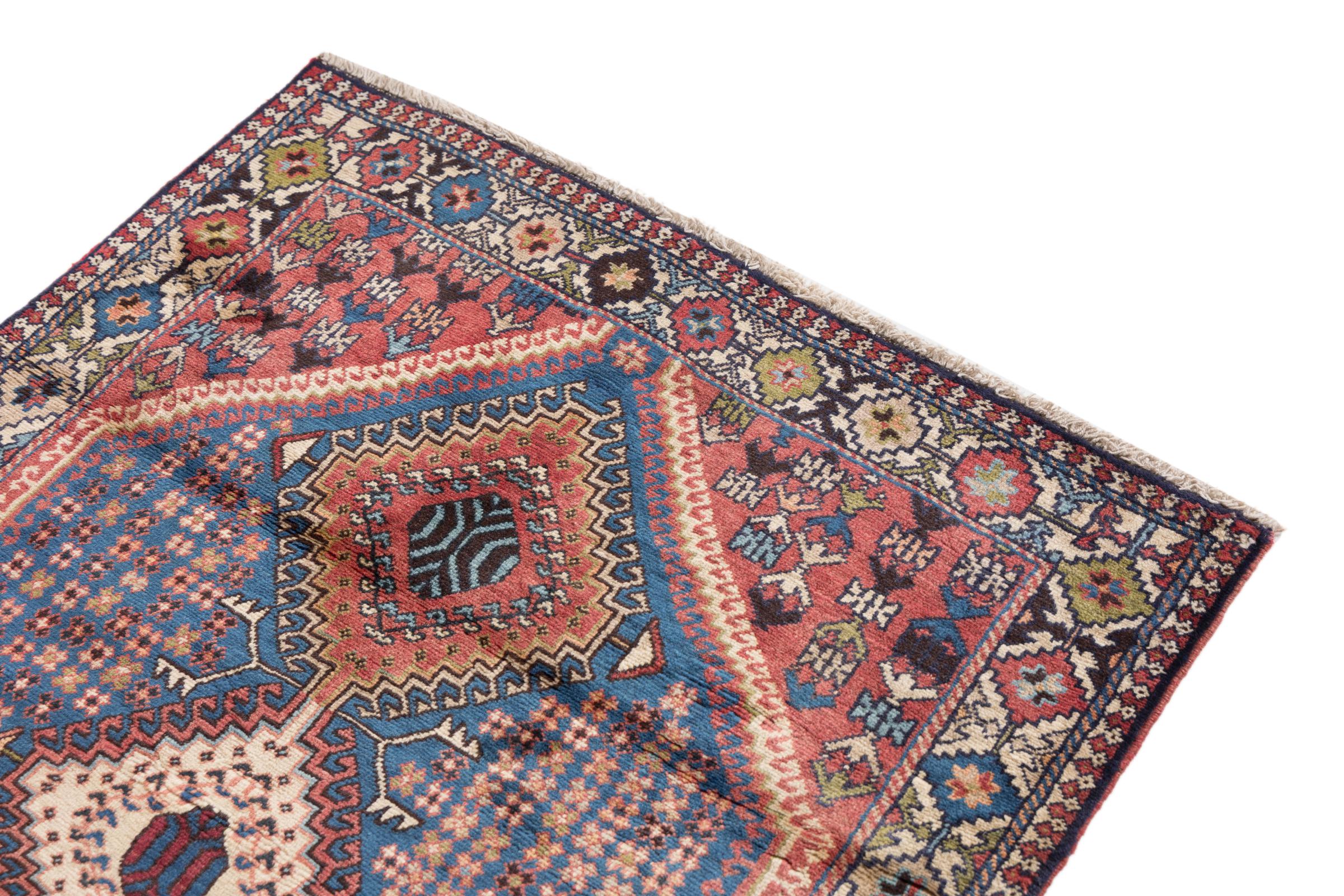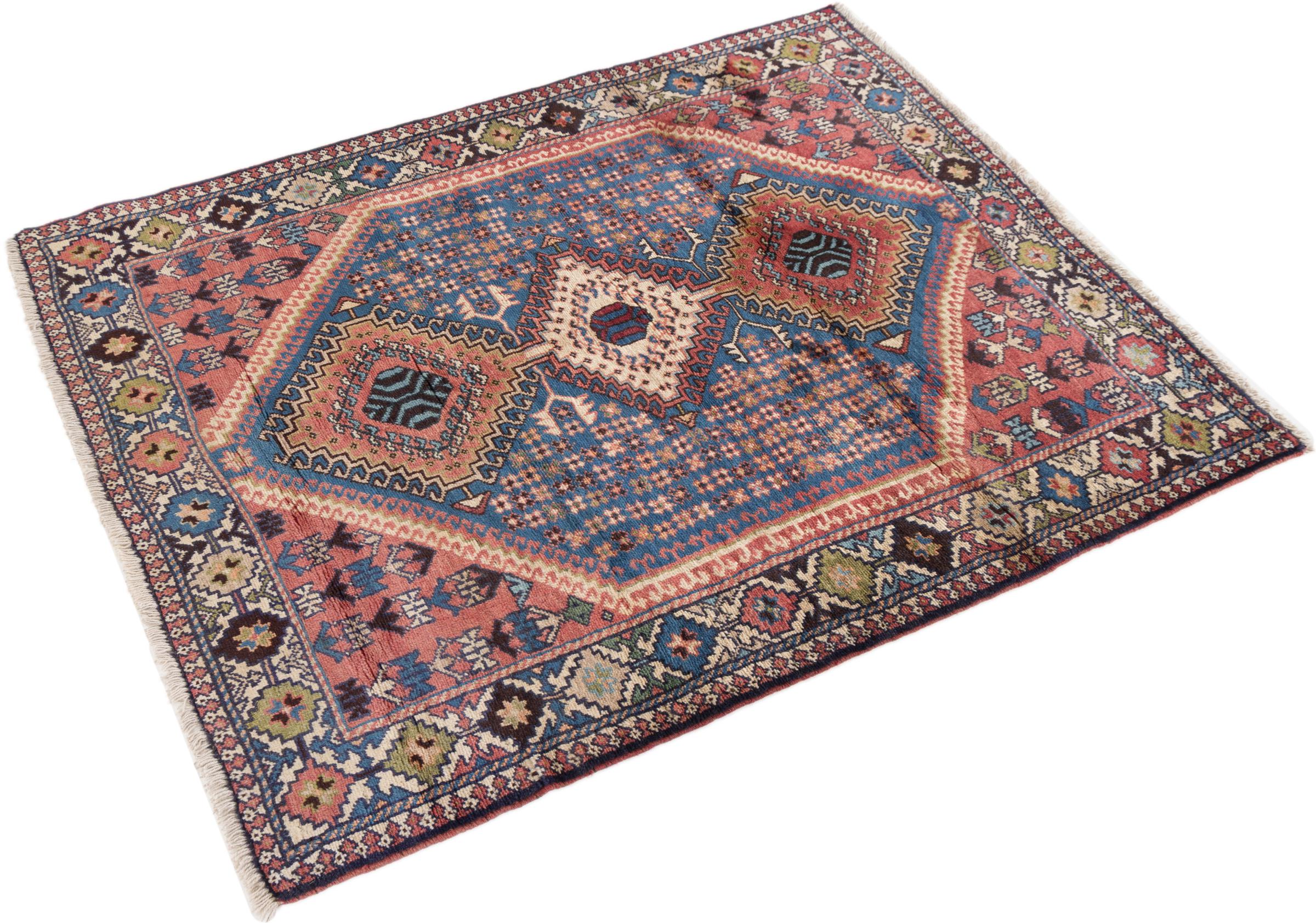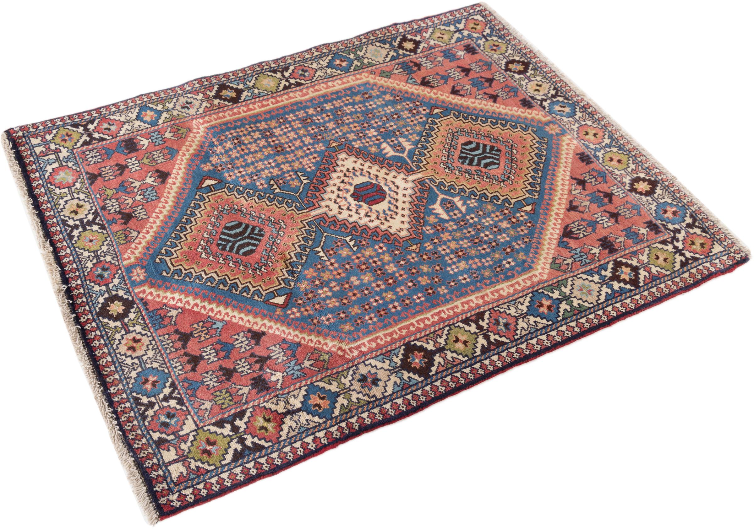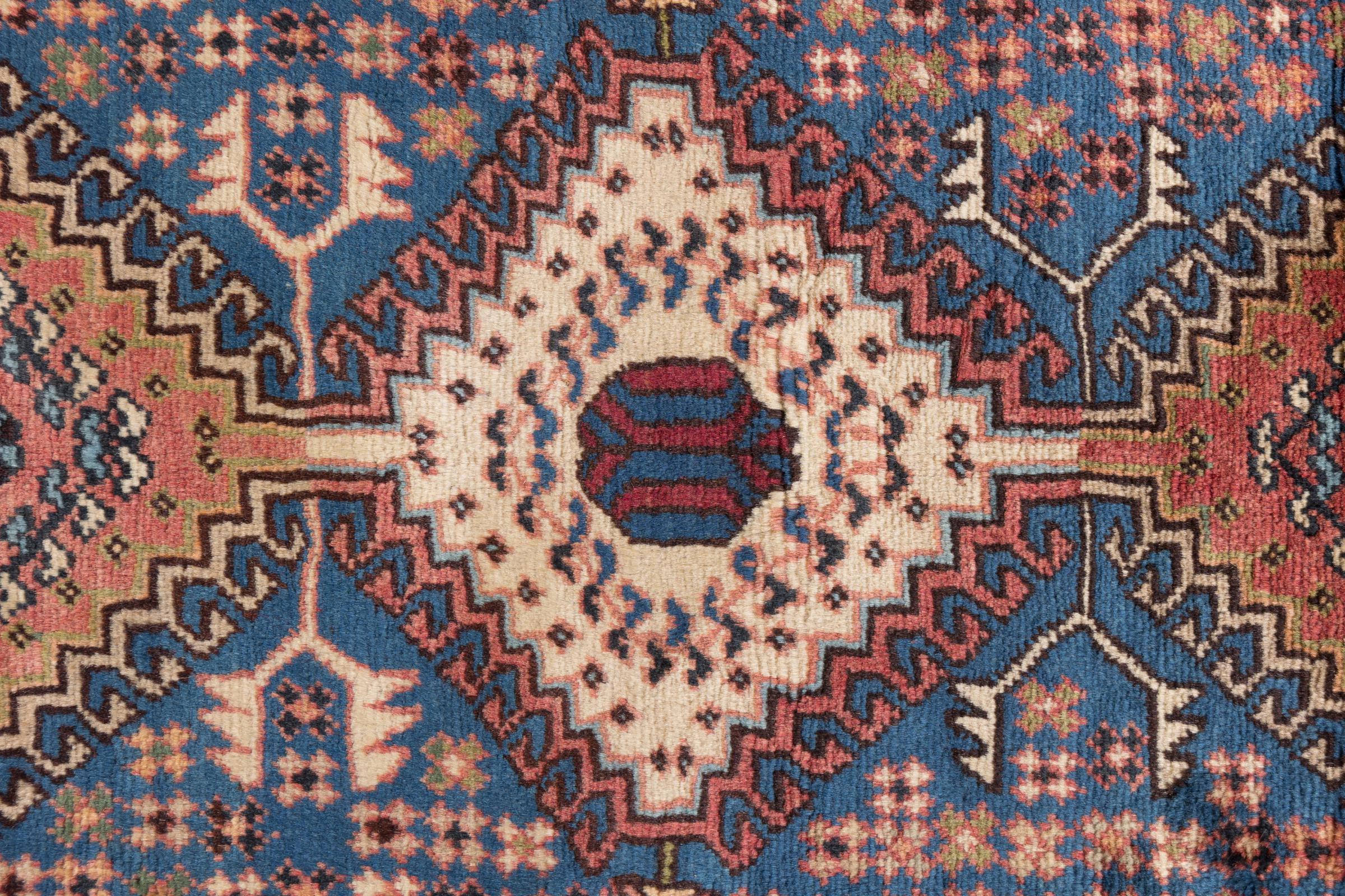 This rug belongs to village and nomadic rugs from Iran, formerly Persia. This type of rug is knotted by hand in smaller towns and villages in old tradition. Even nomads still knot Persian rugs in the open air. The rugs are knotted without a draft and completely from the mind. They are characterized by classical ornaments, which are arranged in straight and geometrical patterns. Thanks to their cultural-traditional origin, these rugs have a unique character that embodies ancient Persia.