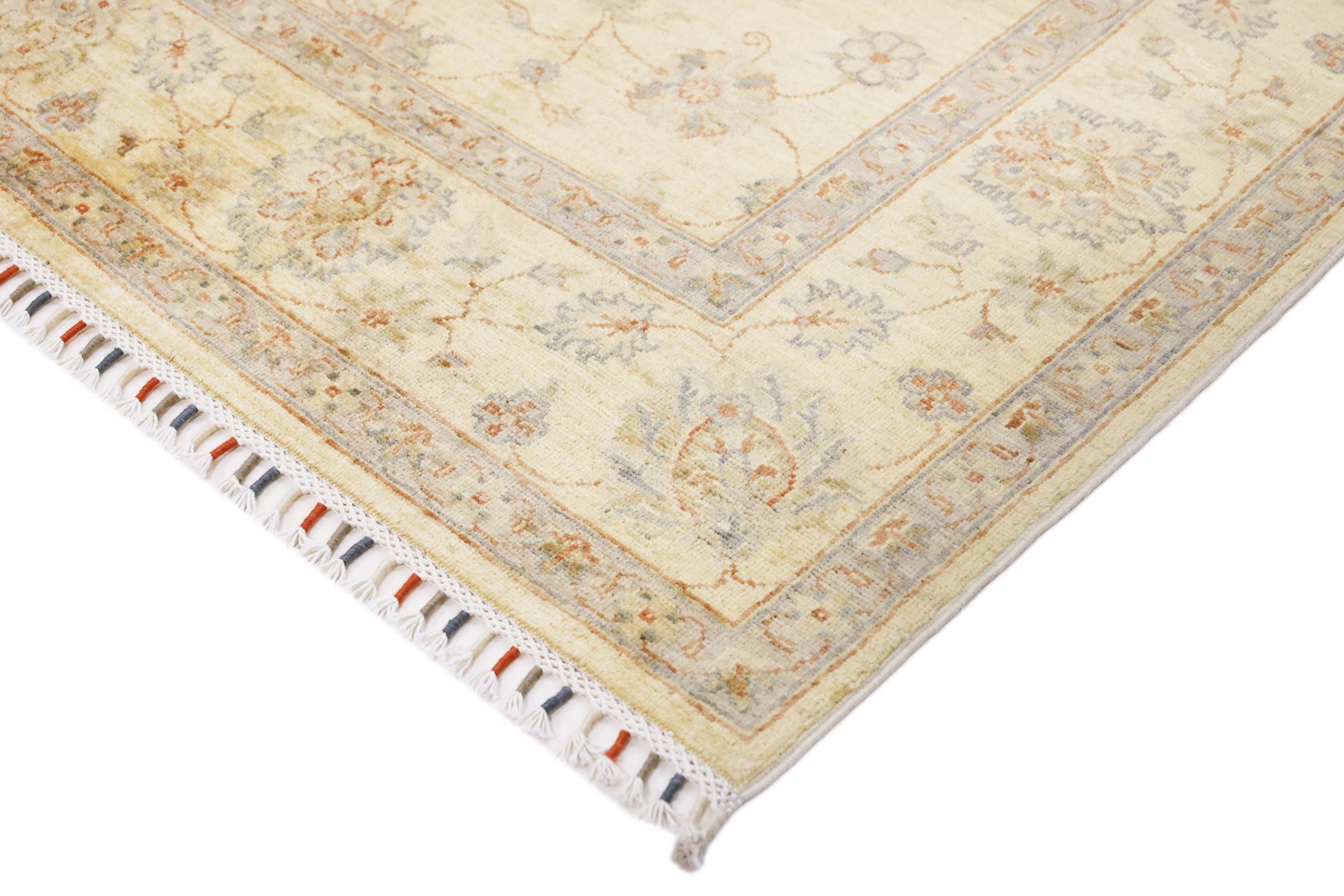 This Ziegler Farahan is hand knotted from high-quality wool in Pakistan. Sheep's wool has a natural fat content, which also protects the carpet from everyday stress. The special treatment method of these carpets achieves a beautiful, modern vintage patina. The carpet is based on traditional Persian carpets and, together with modern design elements, has been brought into the modern age. The result is very popular and high-quality Ziegler carpets, which fit perfectly into modern interior design concepts.